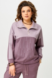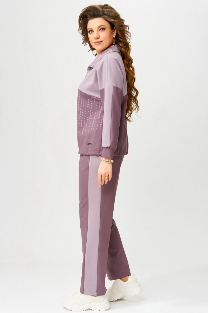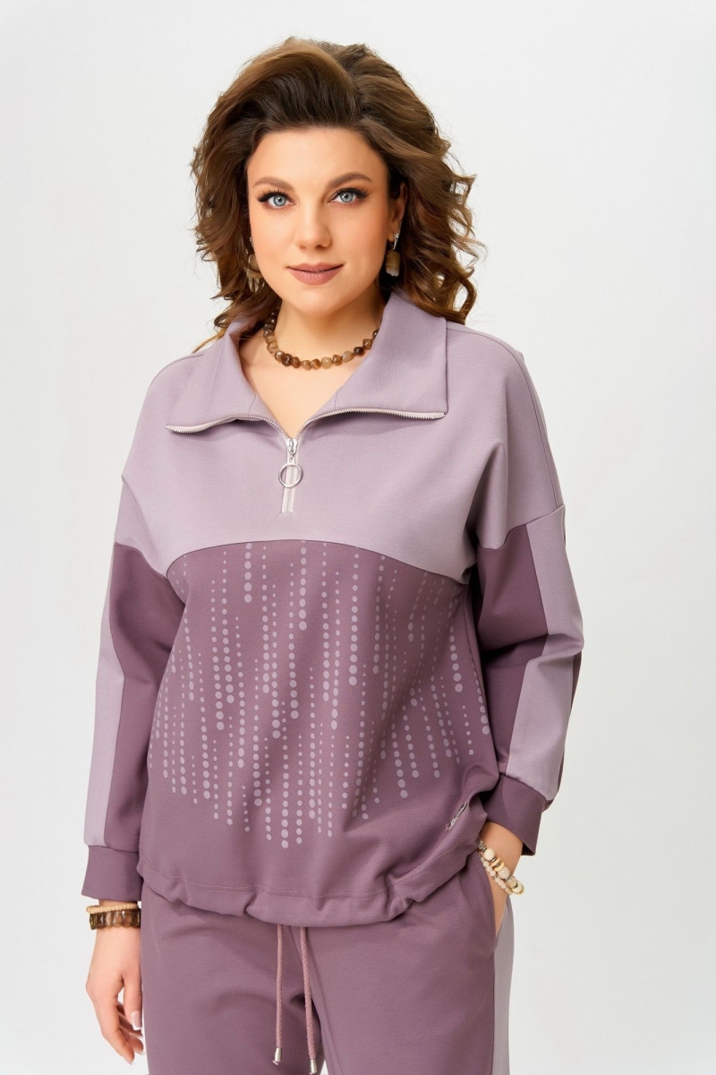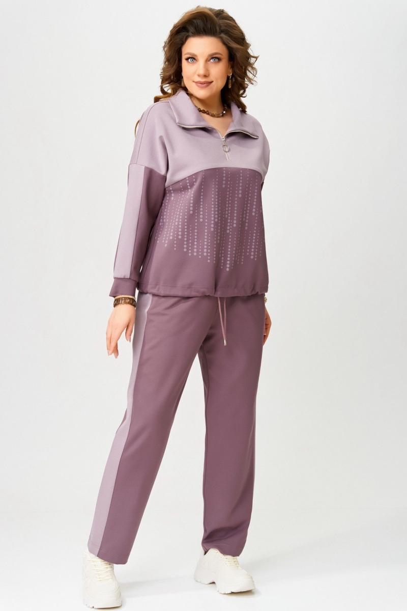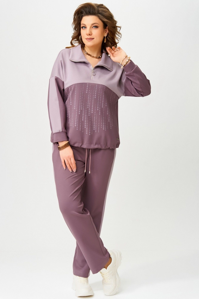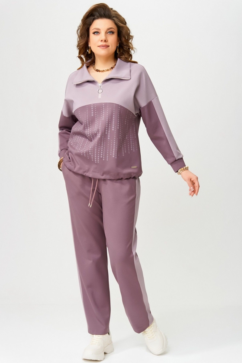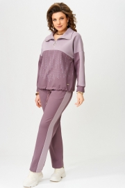 Женский спортивный комплект "Васса" состоит из джемпера и спортивных брюк. Джемпер без подкладки, свободного покроя со спущенным рукавом. Воротник-стойка с застежкой на молнии, по спинке и полочке кокетка из трикотажной ткани, подрезы по спинке и полочке из трикотажной ткани с декоративной печатью. По рукаву лампас из отделочной ткани. По низу джемпера резинка, по низу рукава - манжет. Спортивные брюки выполнены из трикотажного плотна, в боковом шве вставлен лампас из отделочной ткани. В боковом шве выполнен карман, пояс на резинке, низ брюк обработан швом в подгибку с открытым срезом.