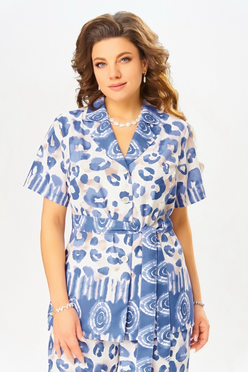 Комплект женский двойка "Изолина" состоит из блузки и брюк, выполнен и сатиновой ткани. Блузка с поясом, прямого силуэта. В блузке однобортная застежка на петли и пуговицы, воротник отложной пиджачного типа с лацканами. Рукава втачные, одношовные, низ рукава обработан швом в подгибку с закрытым срезом. В боковых швах - разрезы. Низ изделия обработан швом в подгибку с закрытым срезом. Брюки прямого силуэта на резинке. В боковых швах - карманы, низ брюк обработан швом в подгибку с закрытым срезом. Модный, стильный и нарядный костюм на все случаи жизни и только для стильных женщин!