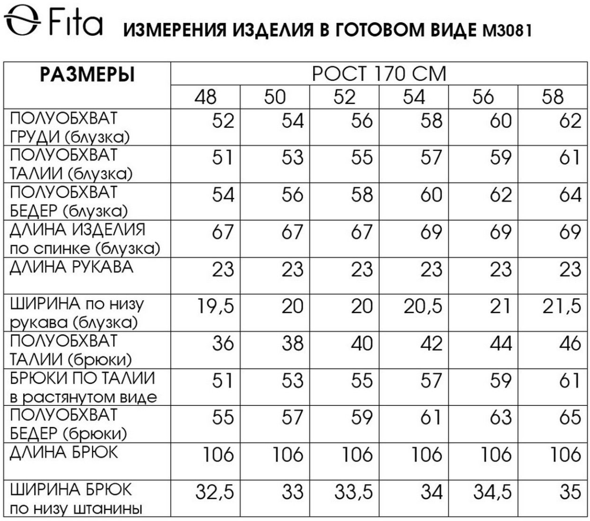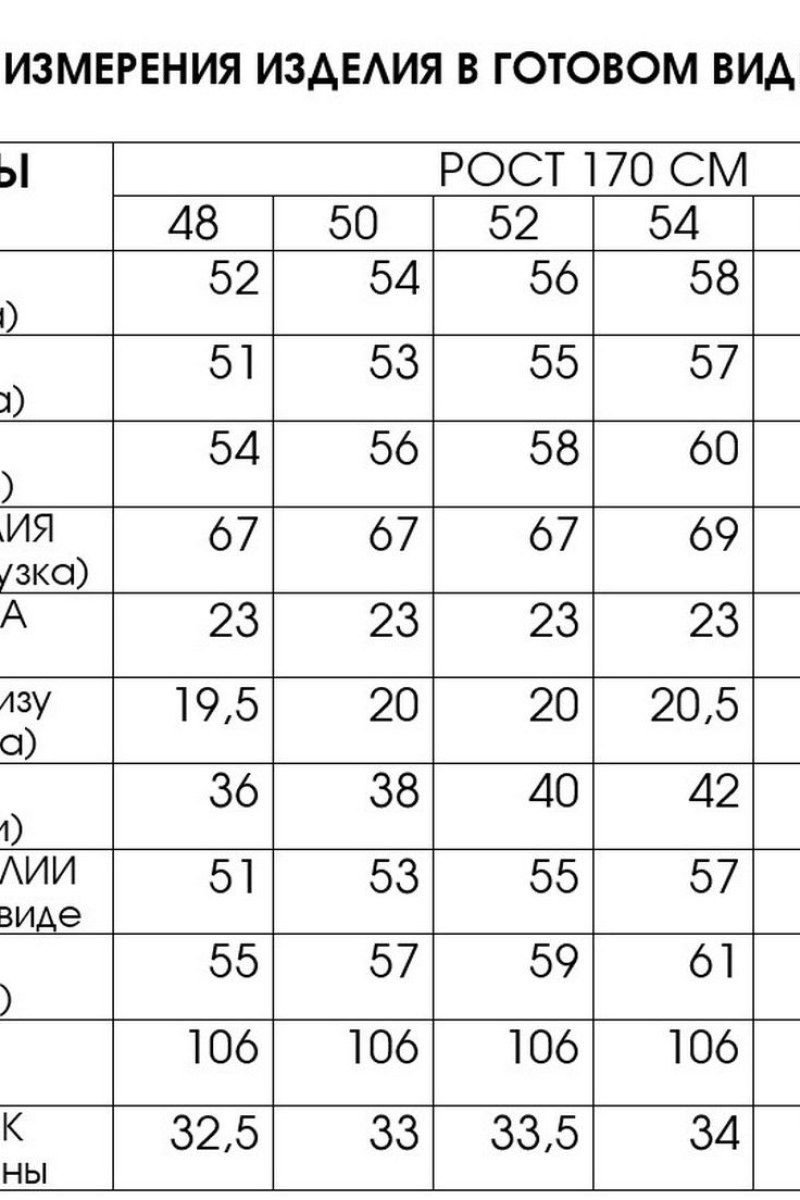 Размеры: 50, 52, 54, 56, 58, 60, 62, 64