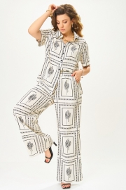 Брюки прямого кроя из вискозной ткани «Штапель» идеально дополняют комплект. Эластичная резинка на талии обеспечивает удобную посадку, а притачной пояс добавляет изысканности. Карманы по боковым швам делают модель практичной, а аккуратная обработка низа завершает образ.