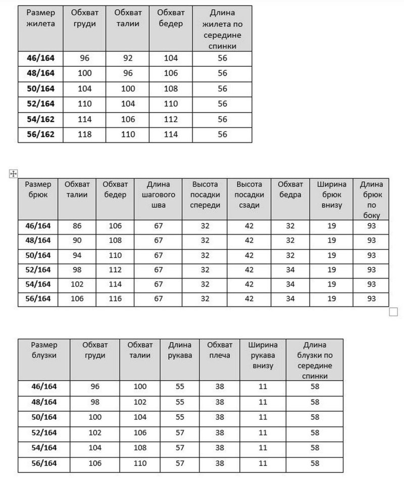 Размер Обхват груди (см) Грудь Обхват талии (см) Талия Обхват бедер (см) Бедра