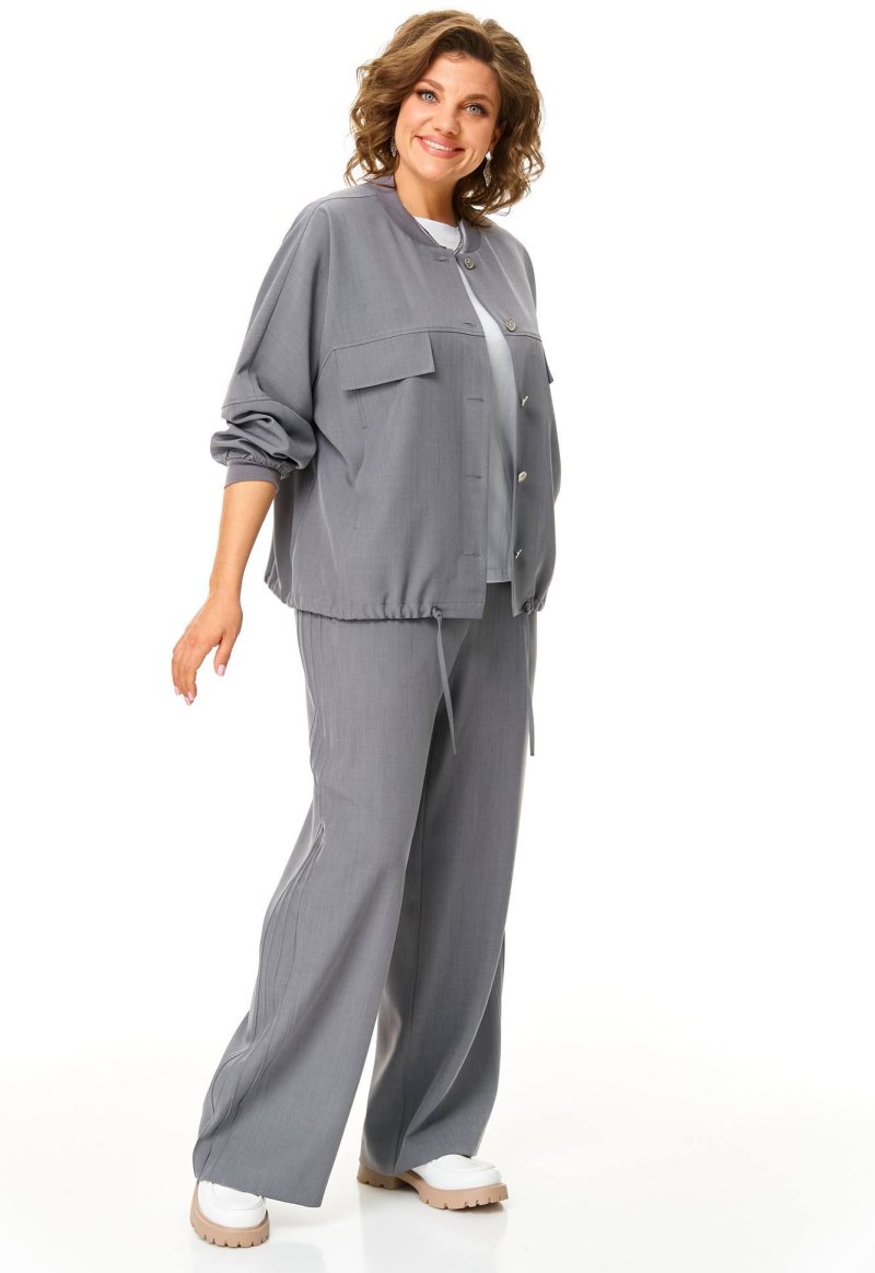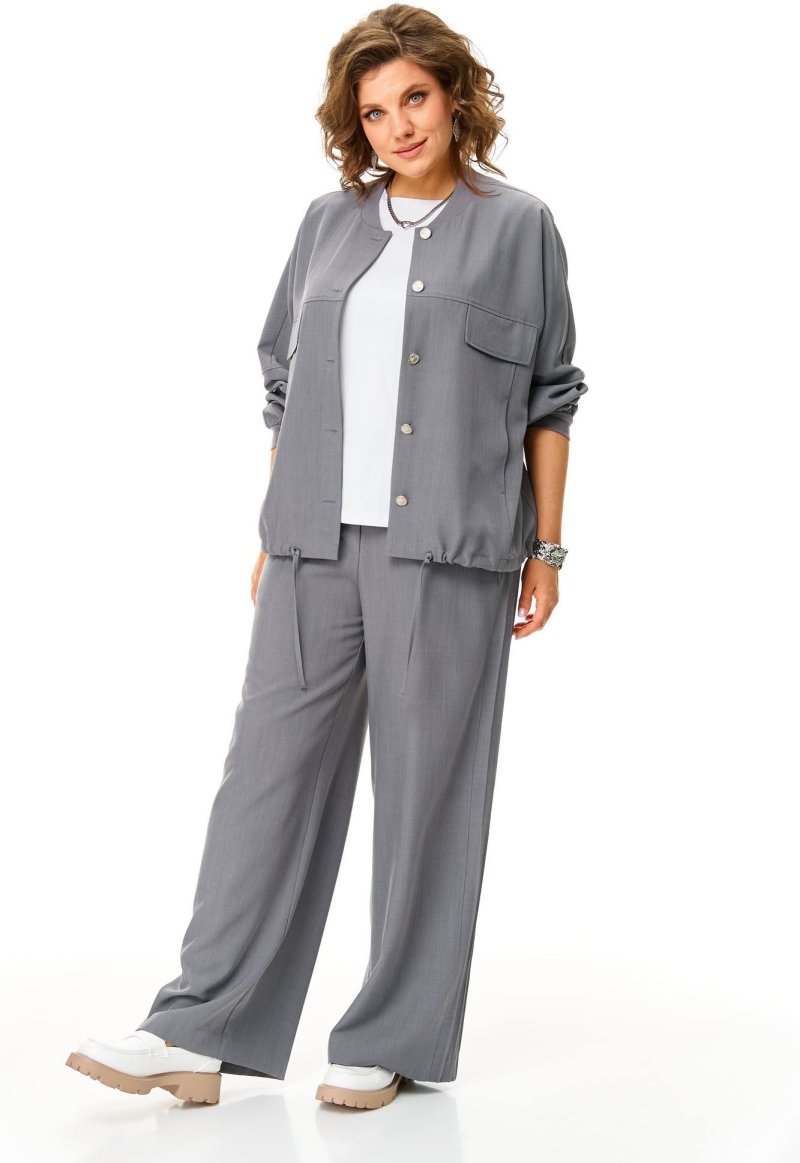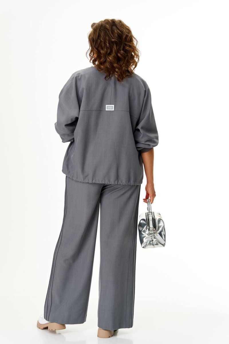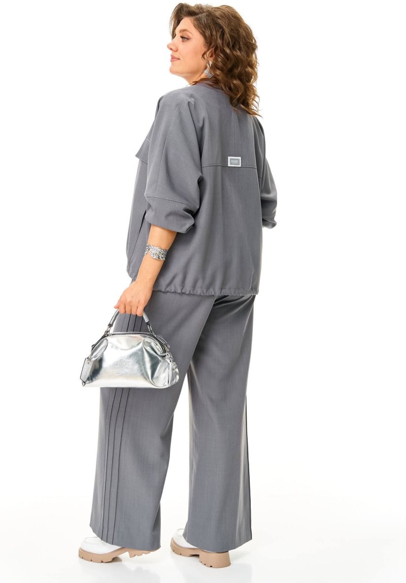 Комплект выполнен из костюмной ткани средней плотности. Топ выполнен из трикотажного полотна.