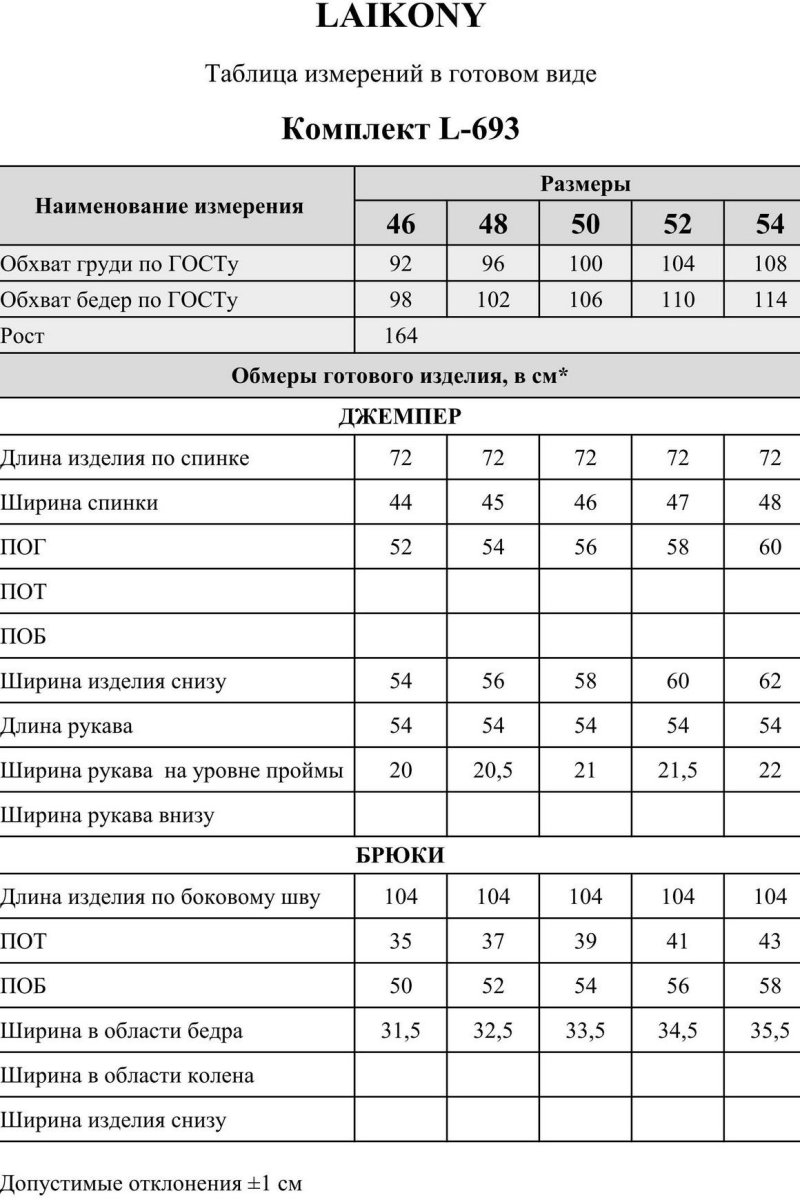 Костюм мне подошёл, сидит отлично. Материал кофточки хоть и не натуральный, но мягкий и приятный на ощупь. Брюки длинные, придётся подшить, мой рост 160 см.