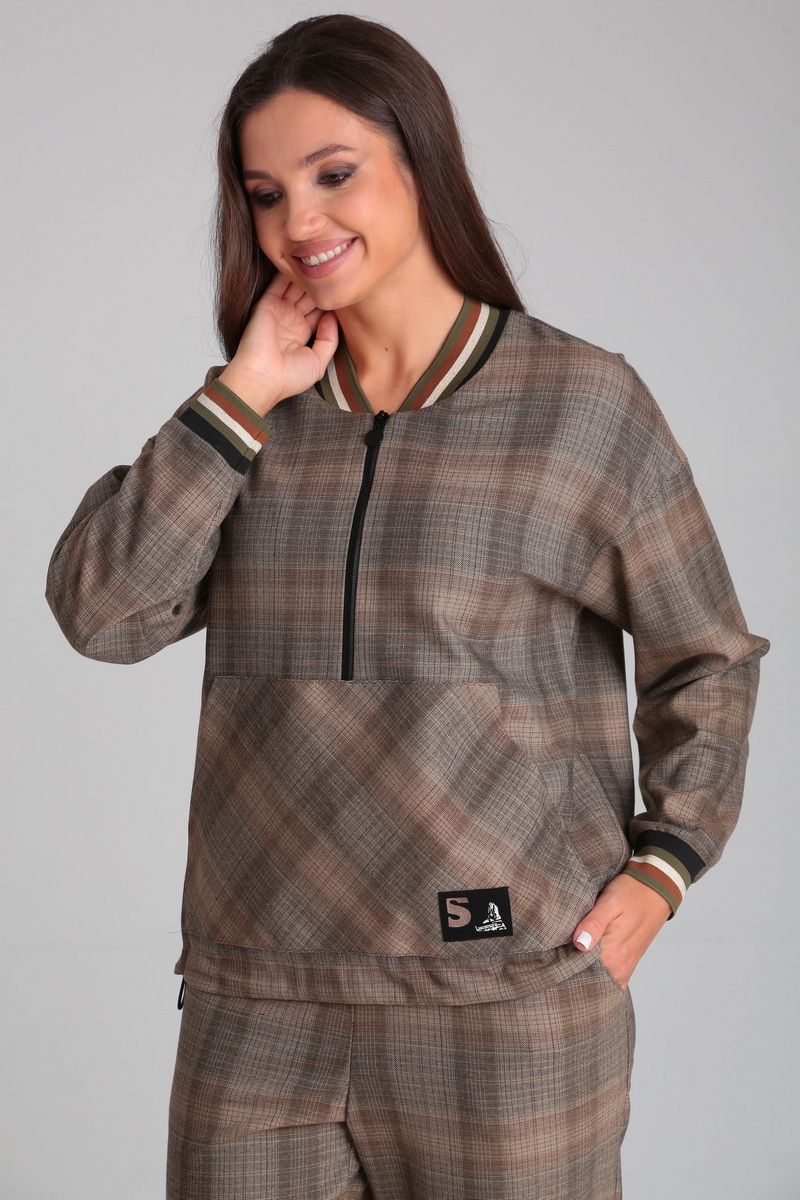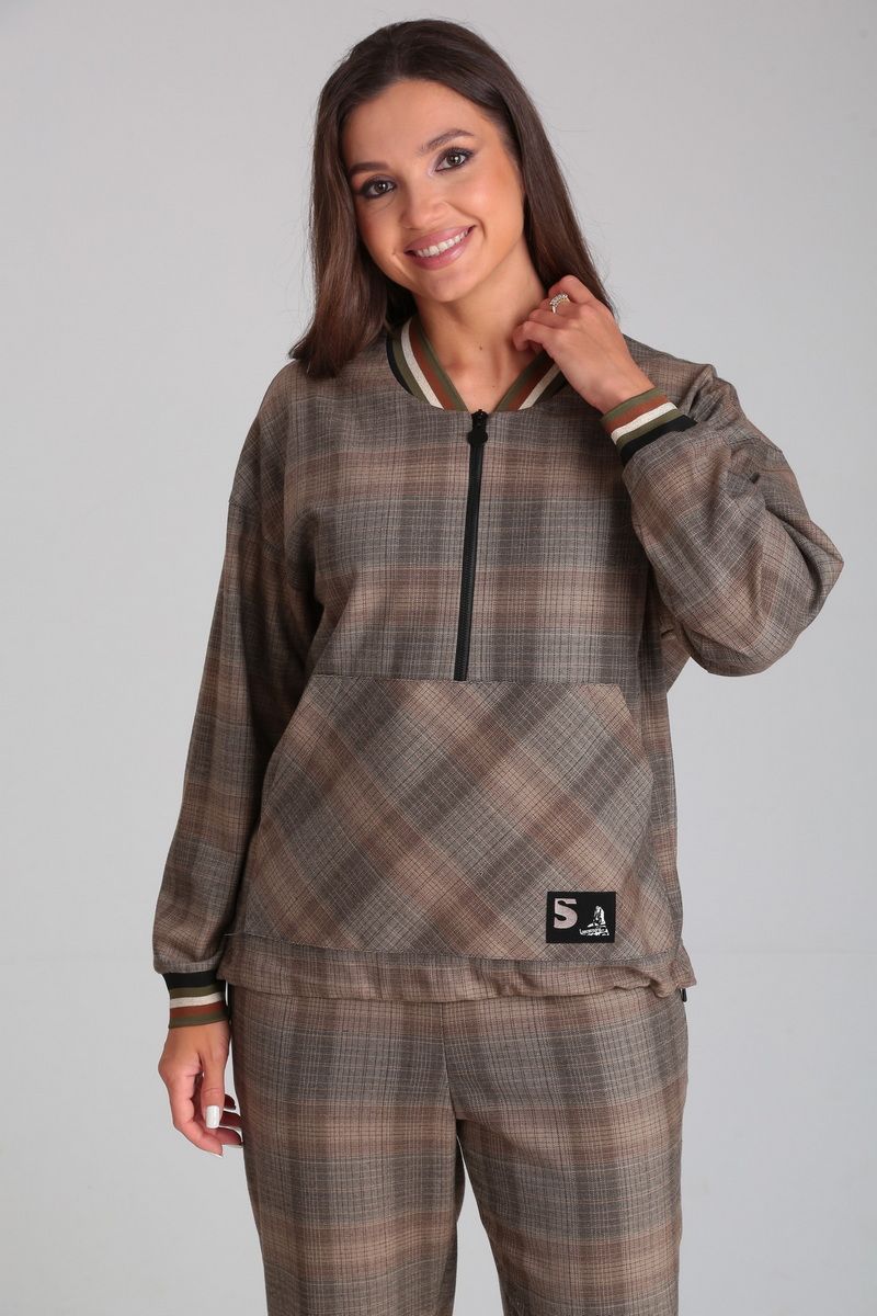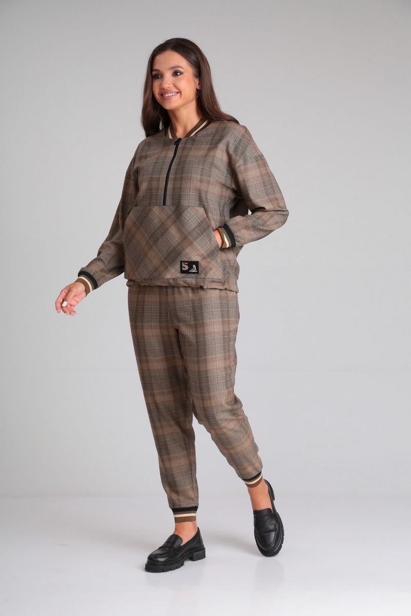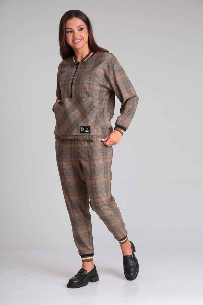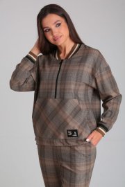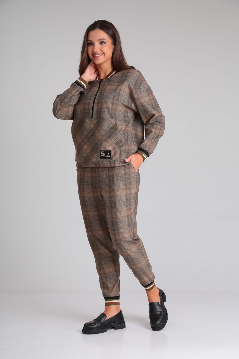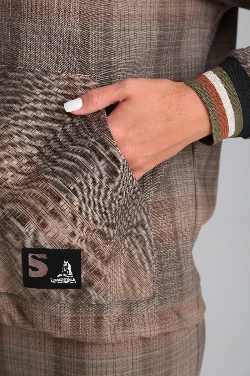 Стильный женский костюм, выполненный из костюмной ткани в клетку (тянется), состоящий из джепра и брюк.
