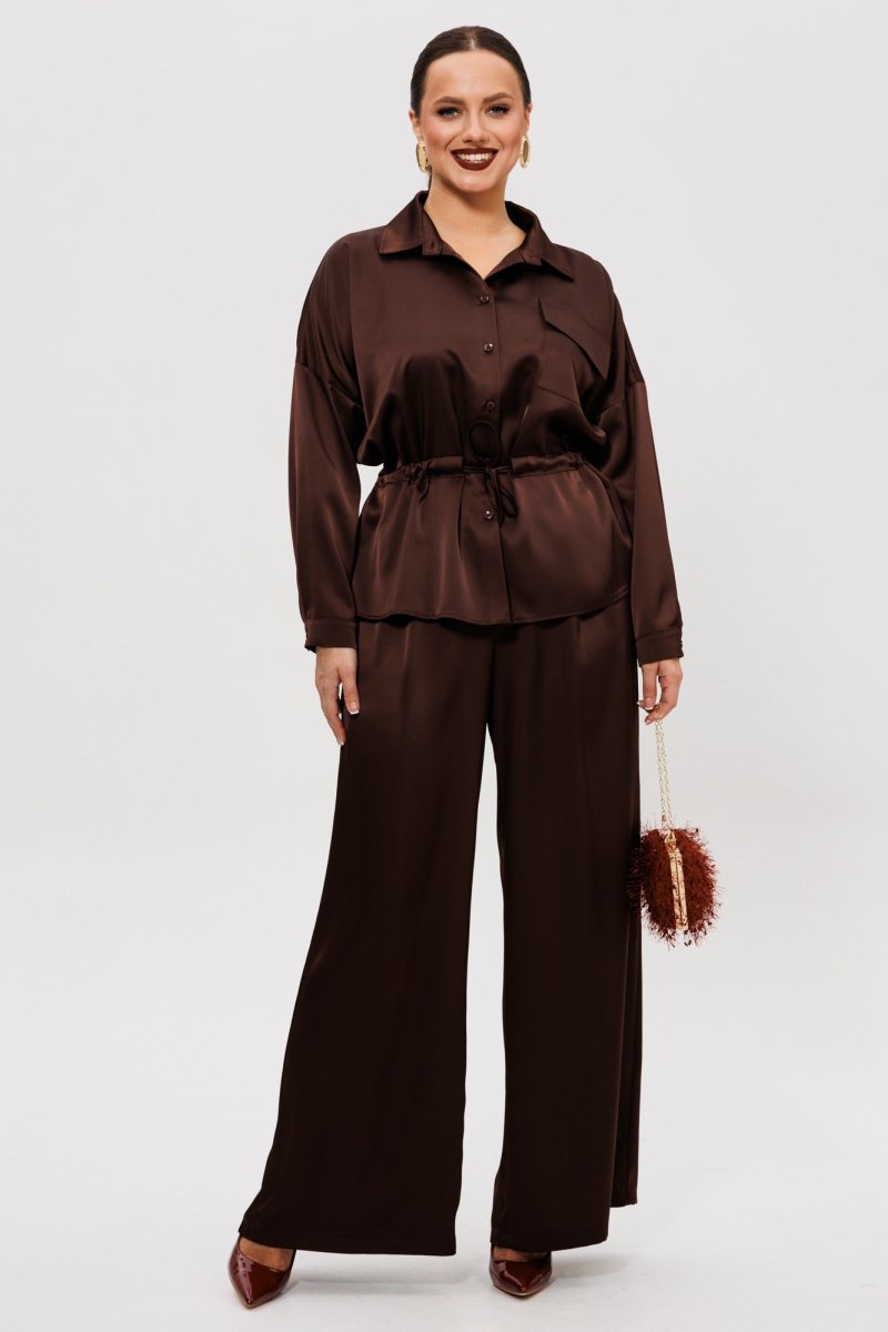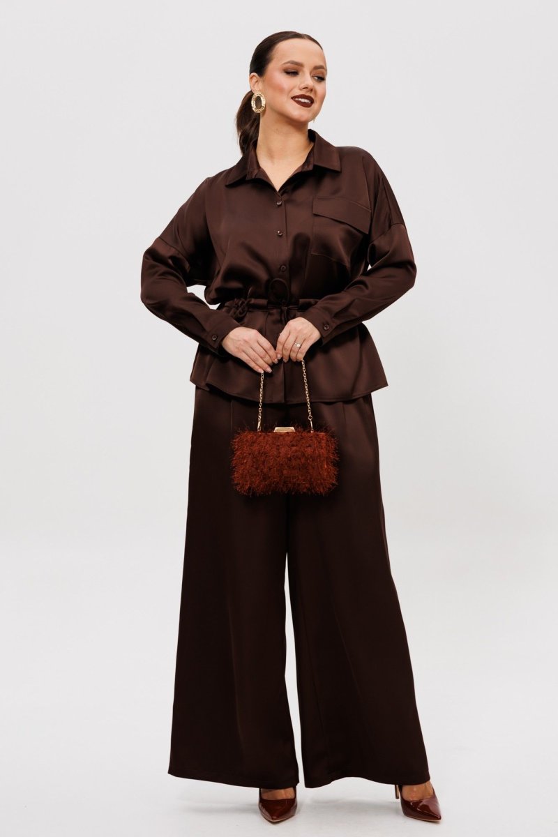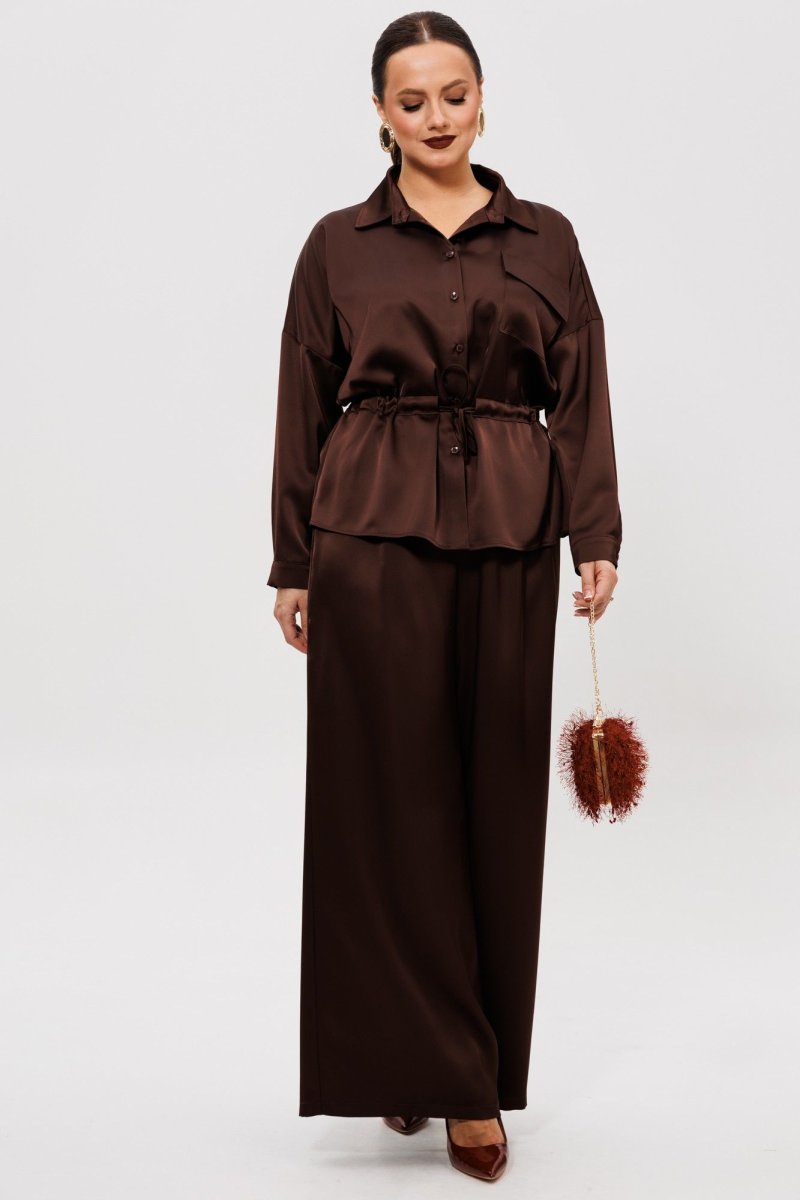 Нарядный брючный костюм, выполненный из струящегося шелка «Армани» (тянется).
