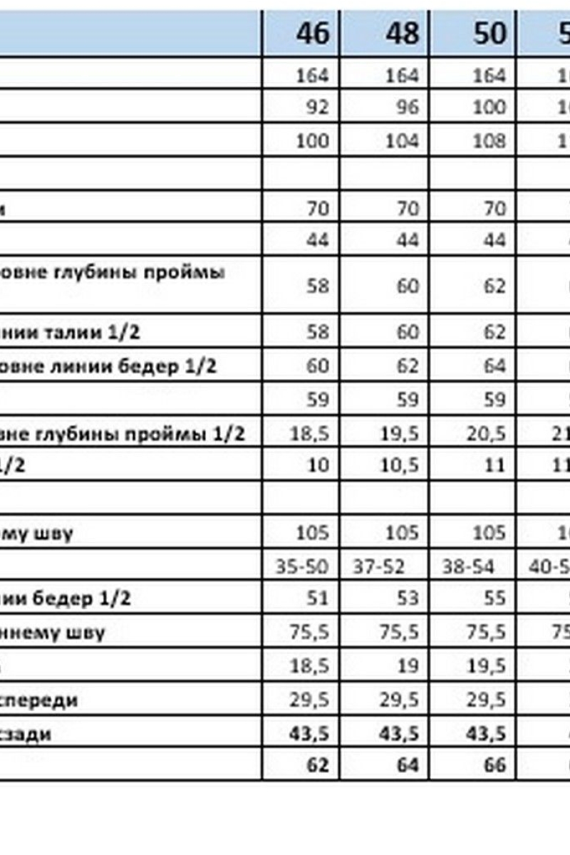 Размер Обхват груди (см) Грудь Обхват талии (см) Талия Обхват бедер (см) Бедра
