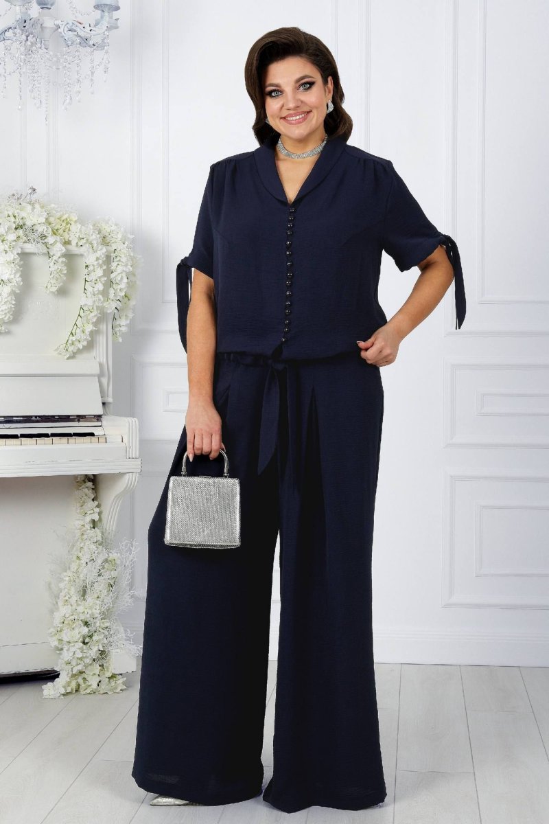 Представляем вашему вниманию брючный костюм от Нинель - идеальный выбор для лета. Сочетание легкой однотонной ткани, стильного воротника и удобных брюк делает этот костюм идеальным выбором для лета. Нежные и элегантные детали этого костюма придают вашему образу изысканность и шарм. Вы сможете носить его как в офисе, создавая деловой и стильный образ, так и на торжественных мероприятиях, подчеркивая свою элегантность и женственность.