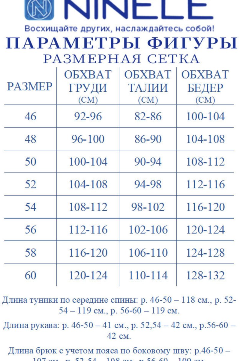 Состав: туника - полиэстер 100%; брюки - полиэстер 97%, спандекс 3%