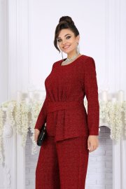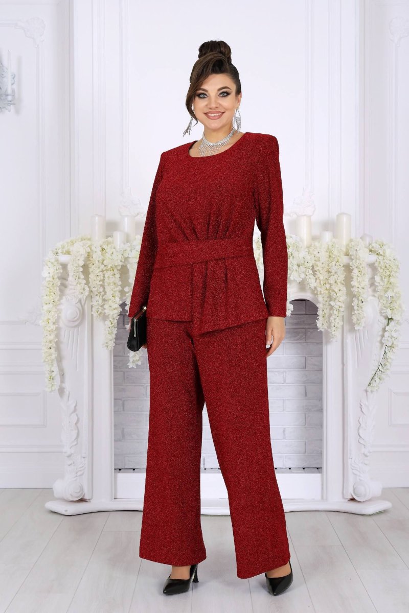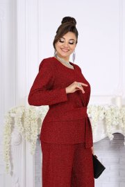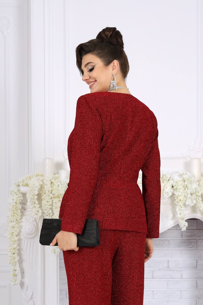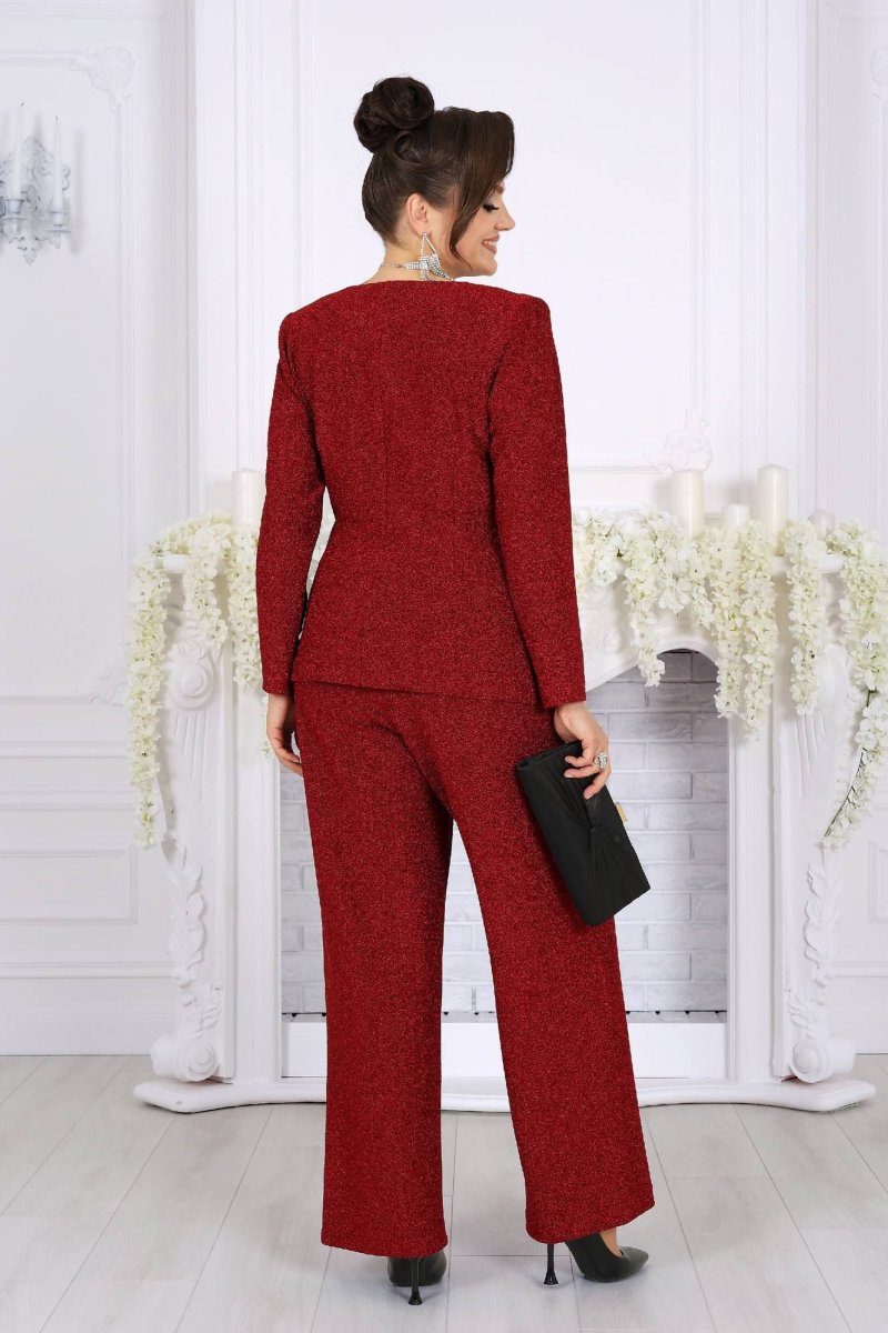 В этом костюме каждая деталь продумана так, чтобы создавать ощущение безупречного стиля и лёгкой роскоши. Мягкое мерцание люрекса делает образ выразительным и дорогим, а утончённый крой подчёркивает женственность и гармонию силуэта.