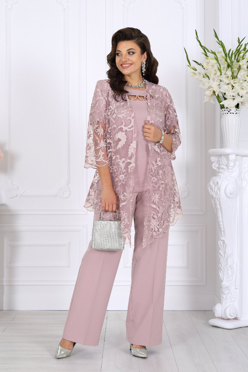 Комплект состоит из трёх предметов: изысканного кардигана из гипюра, мягкой трикотажной блузки и классических брюк со стрелками. Такой ансамбль выглядит нарядно, подчеркивает женственность и формирует правильный силуэт даже для фигур plus size.