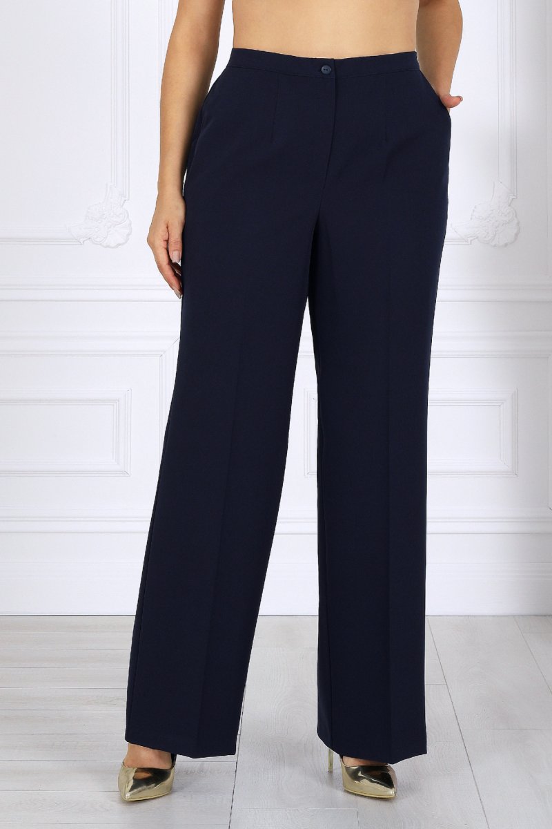 Брюки классические, длинные, с посадкой на талии, выполнены из костюмно- плательной ткани. Модель со стрелками. Передние и задние половинки брюк с талиевыми вытачками, направленными от пояса вниз. Спереди обработаны наклонные боковые карманы и центральная застёжка на тесьму-«молнию». Притачной пояс застегивается на 1 петлю и 1 пуговицу; для лучшего прилегания по линии талии в притачном поясе предусмотрена эластичная лента, вставленная по спинке. Длина брюк по боковому (с поясом) – 107 см (50-52 р-р), 108 см 954-58 р-р).