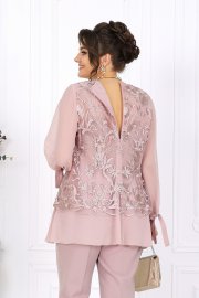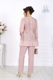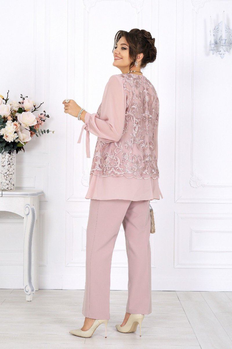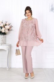 Этот нарядный костюм для полных женщин станет вашим универсальным решением — он уместен и на праздничном вечере, и в офисной обстановке. Модель гармонично сочетает в себе торжественность и лаконичность, поэтому одинаково эффектно смотрится как с лодочками и клатчем, так и с более сдержанными аксессуарами.