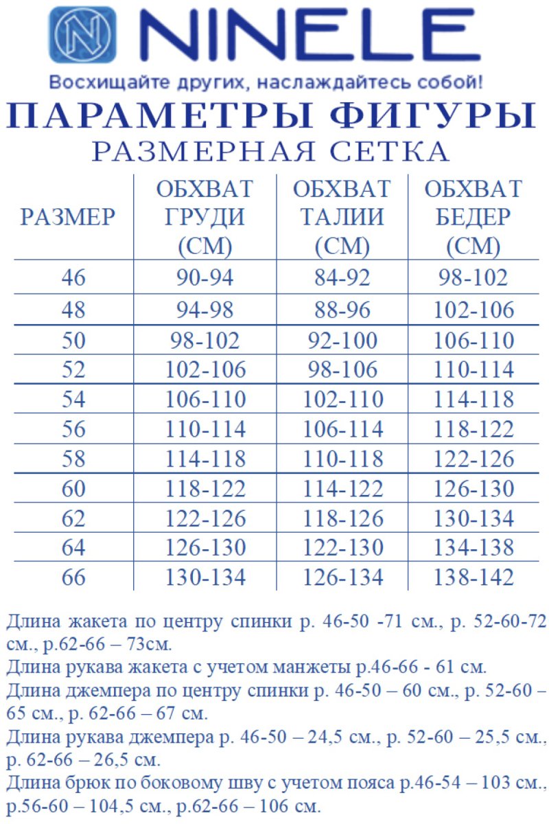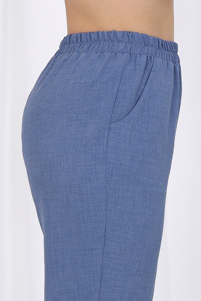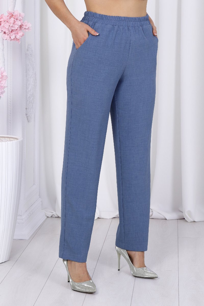 Брюки классические длинные, прямого силуэта, с посадкой на талии, выполнены из ткани «лен-вишер». Модель без застёжки, на притачном поясе, с эластичной лентой внутри. Передние половинки брюк с боковыми наклонными карманами. Длина брюк по боковому (с поясом)-103 см (46-54 р-р), 104,5 см (56-60 р-р), 106 см (62-66 р-р).