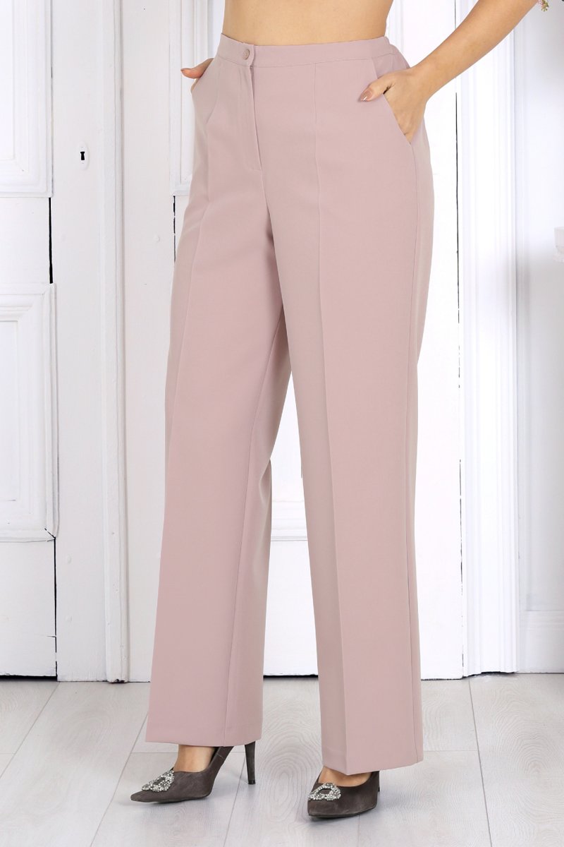 Классические брюки со стрелками идеально садятся по фигуре благодаря эластичной вставке в поясе и мягкой посадке на талии. Этот костюм отлично подходит для женщин с пышными формами — подчеркивает достоинства, визуально вытягивает силуэт и делает образ торжественным и уверенным.