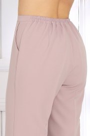 Брюки классические, длинные, с посадкой на талии, выполнены из костюмно- плательной ткани. Модель со стрелками. Передние и задние половинки брюк с талиевыми вытачками, направленными от пояса вниз. Спереди обработаны наклонные боковые карманы и центральная застёжка на тесьму-«молнию». Притачной пояс застегивается на 1 петлю и 1 пуговицу; для лучшего прилегания по линии талии в притачном поясе предусмотрена эластичная лента, вставленная по спинке. Длина брюк по боковому (с поясом) -- 107 см.