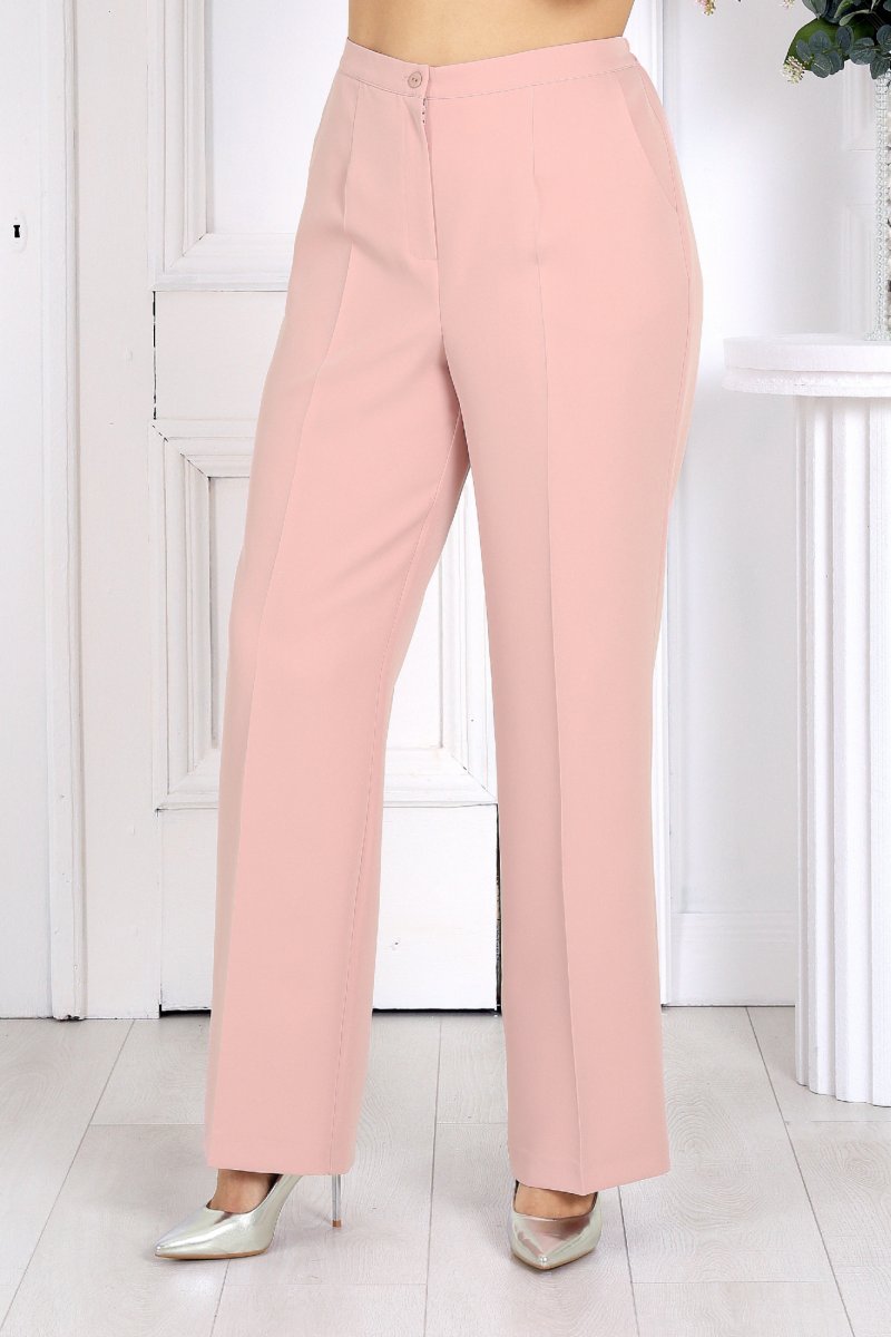 Классические брюки со стрелками идеально садятся по фигуре благодаря эластичной вставке в поясе и мягкой посадке на талии. Этот костюм отлично подходит для женщин с пышными формами — подчеркивает достоинства, визуально вытягивает силуэт и делает образ торжественным и уверенным.