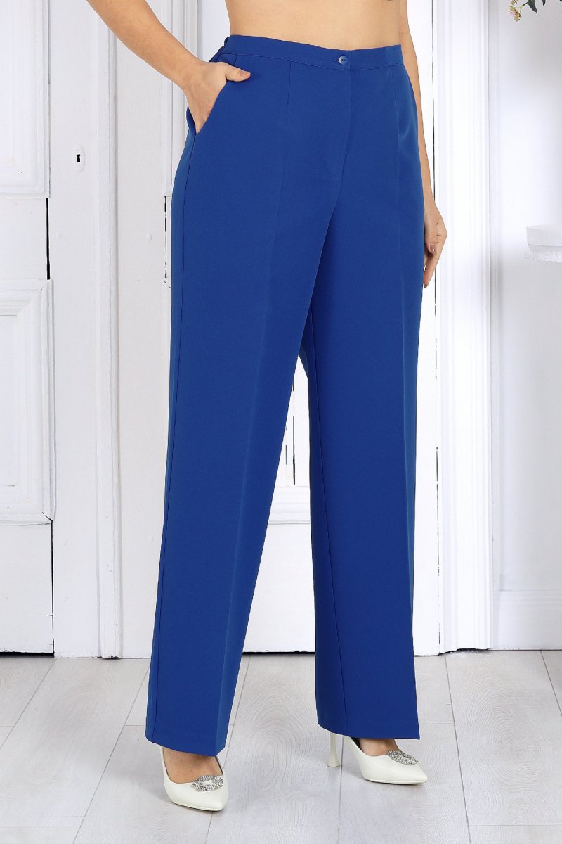 Классические брюки со стрелками идеально садятся по фигуре благодаря эластичной вставке в поясе и мягкой посадке на талии. Этот костюм отлично подходит для женщин с пышными формами — подчеркивает достоинства, визуально вытягивает силуэт и делает образ торжественным и уверенным.