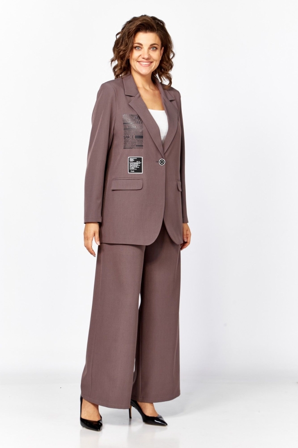 Комплект женский двухпредметный, состоящий из жакета и брюк. Стильный и непринужденный образ, который подчеркнет хрупкость и утонченность, скроет несовершенства фигуры. Комплект отлично подойдет как для повседневной носки, так и для праздничных выходов, достаточно дополнить его соответствующими аксессуарами. Предметы комплекта легко будут сочетаться с вещами из Вашего гардероба. Жакет с центральной застежкой на петли-пуговицы полуприлегающего силуэта. Перед на подкладке, в жакете прорезные карманы с клапаном, воротник пиджачного типа. По переду настрочены декоративные нашивки. Рукав втачной, одношовный. Брюки прямые, пояс на резинке, по бокам карманы. Внимание! Декоративные элементы и фурнитура могут отличаться от заявленного на фото