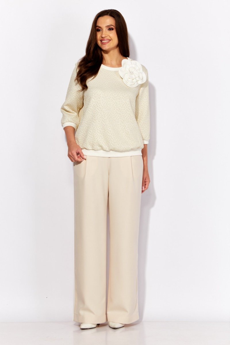 Комплект женский, состоящий из нарядного джемпера и брюк. Джемпер прямого силуэта с втачным рукавом, длинной 3/4.