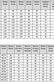 Таблица размеров