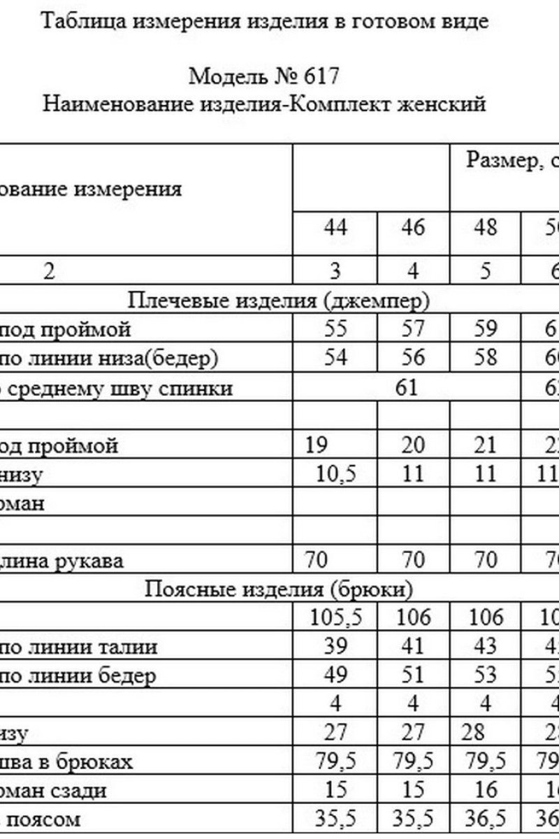 Длина изделия по среднему шву спинки 61-62см, длина рукава70см, длина брюк 105,5-106.