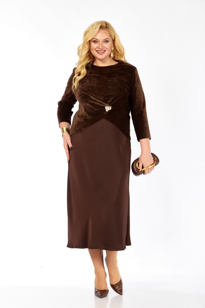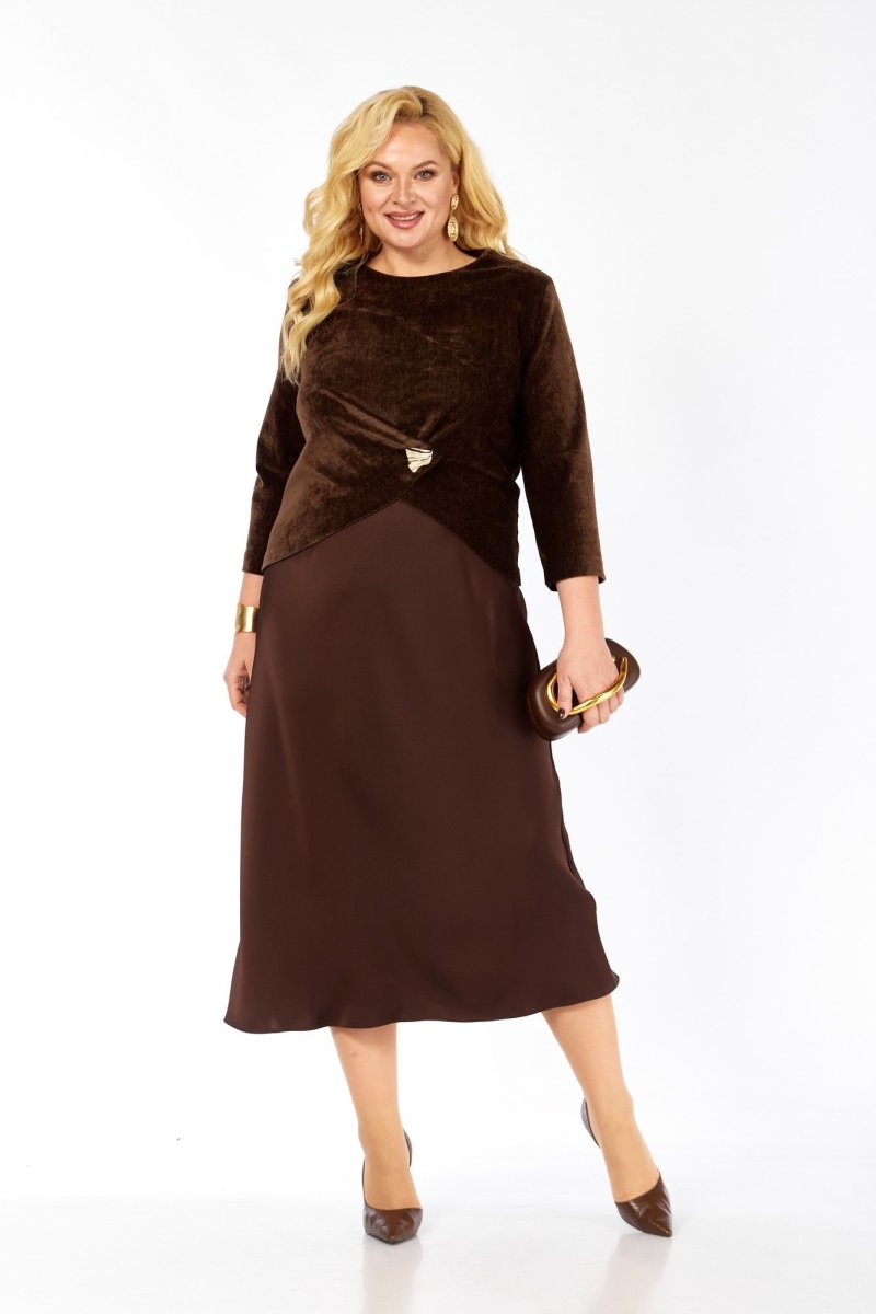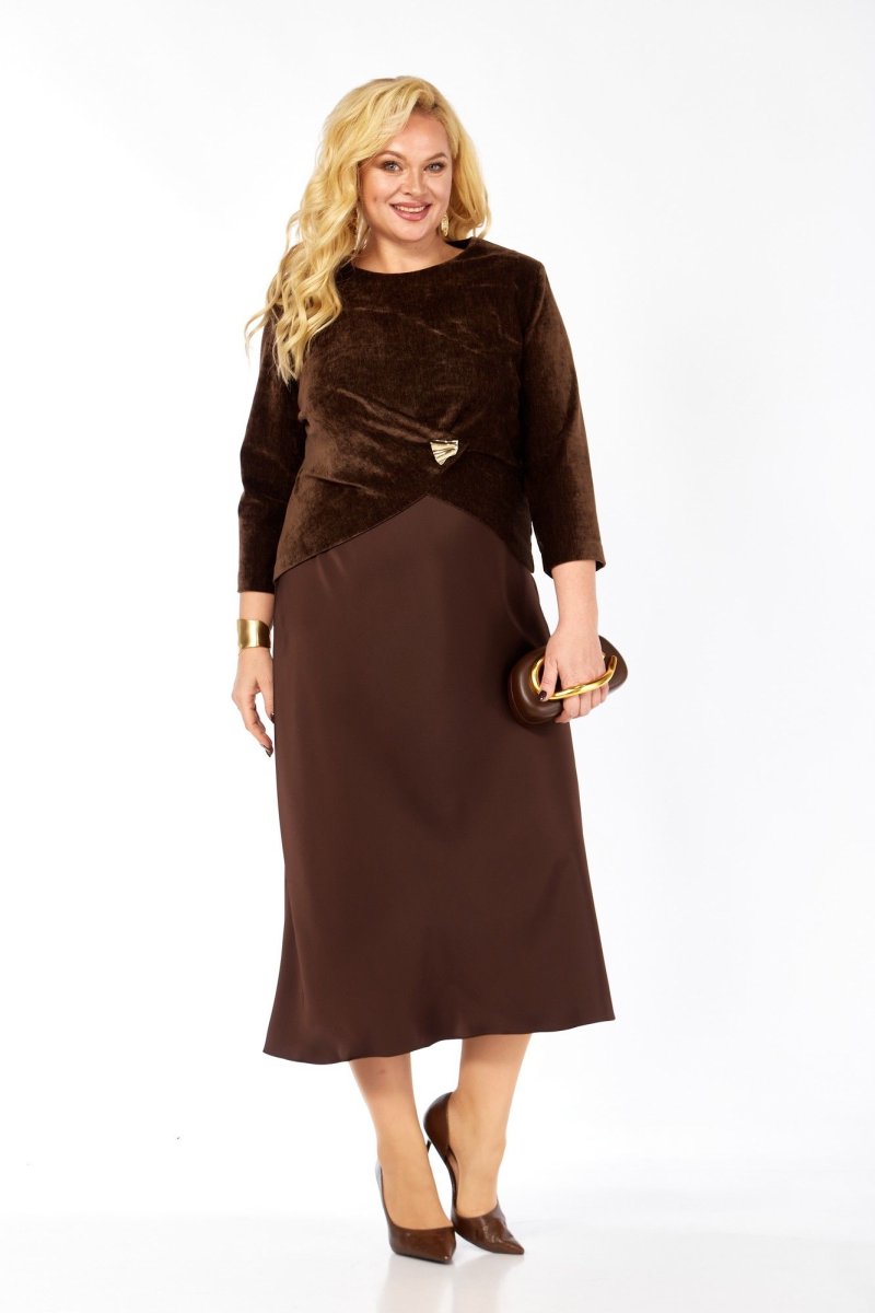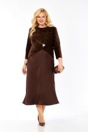 Стильный наряд включает в себя два изделия платье и блуза. Платье полуприлегающего силуэта, длина миди. Блуза выполнена из мягкого бархата, идеально сядет по фигуре, фасон интересен тем, что модельные линии, как нельзя лучше подчеркивают плавные изгибы женской фигуры, это позволит чувствовать себя ярко и уверенно. Низ изделия асимметричный, украшен декоративной брошью. Вырез горловины классический овальный. Рукав втачной, длина 7/8. Идеально подходит для торжественных выходов и не только!
