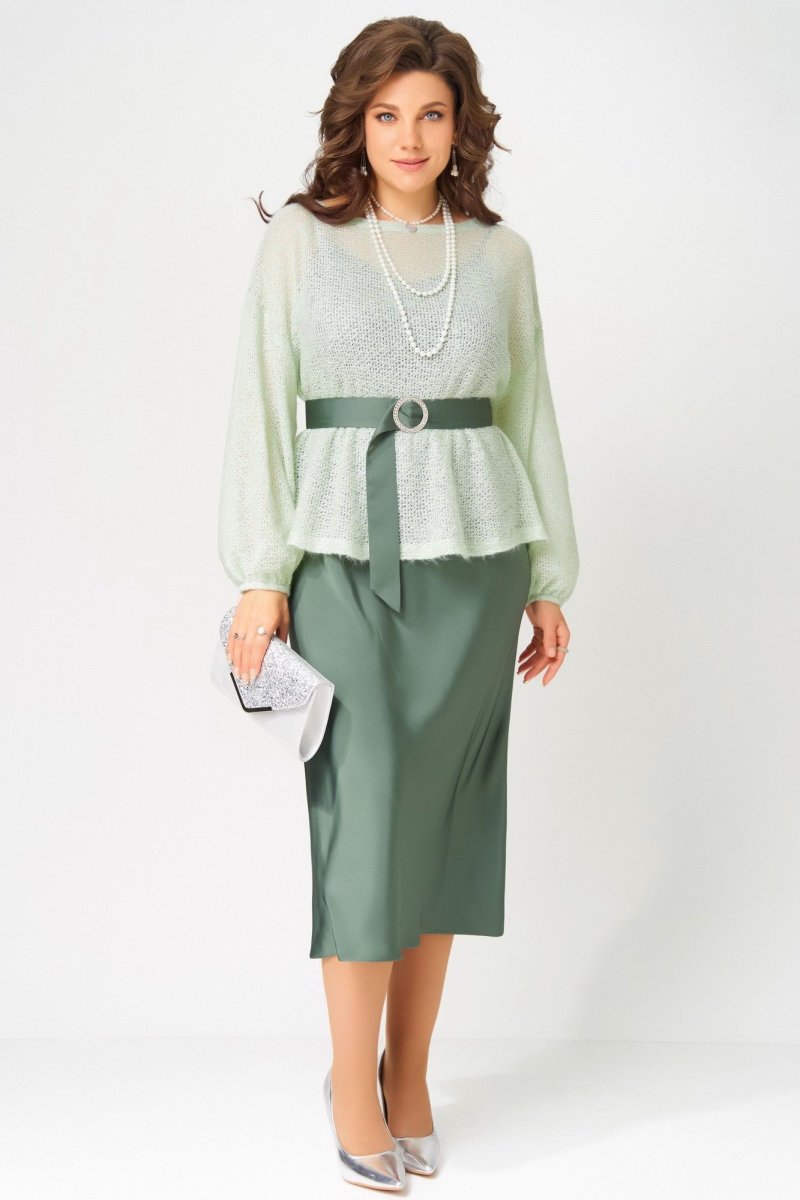 "Эдита" — элегантный образ для волшебной ночи. Сатиновое платье струится мягким блеском, а трикотажная накидка из махера с шерстью добавляет тепла и фактурности. Идеальный наряд для встречи Нового года и других торжеств, когда хочется сиять и чувствовать себя особенно.
