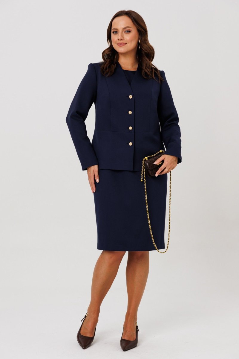 54р – жакет – ОГ 118, ОТ 108, ОБ 126, ширина рукава 40; платье – ОГ 118, ОТ 108, ОБ 122, ширина рукава 40