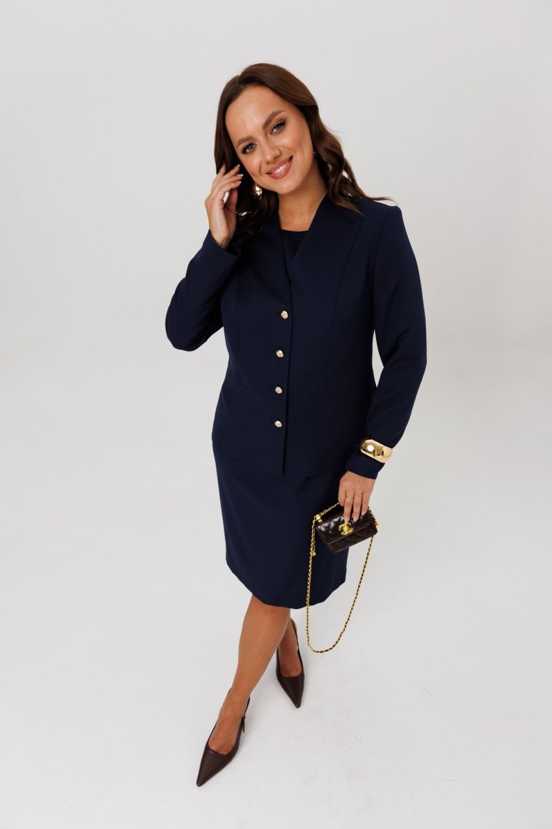 Элегантный женский комплект, состоящий из жакета и платья.