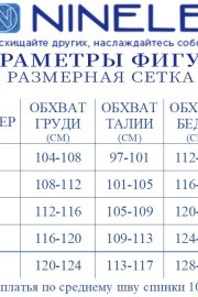| Размер | Обхват груди (см) Грудь | Обхват талии (см) Талия | Обхват бедер (см) Бедра |