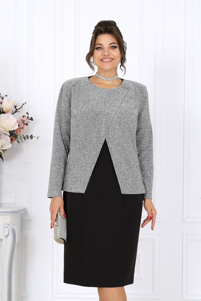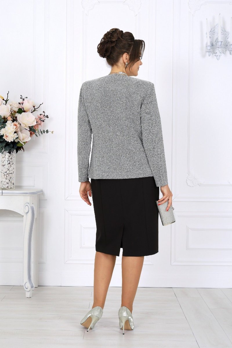Состав: жакет - полиэстер 70%, люрекс 25%, спандекс 5%; подкладка жакета - полиэстер 100%; платье - полиэстер 97%, спандекс 3%; подкладка платья - полиэстер 100%