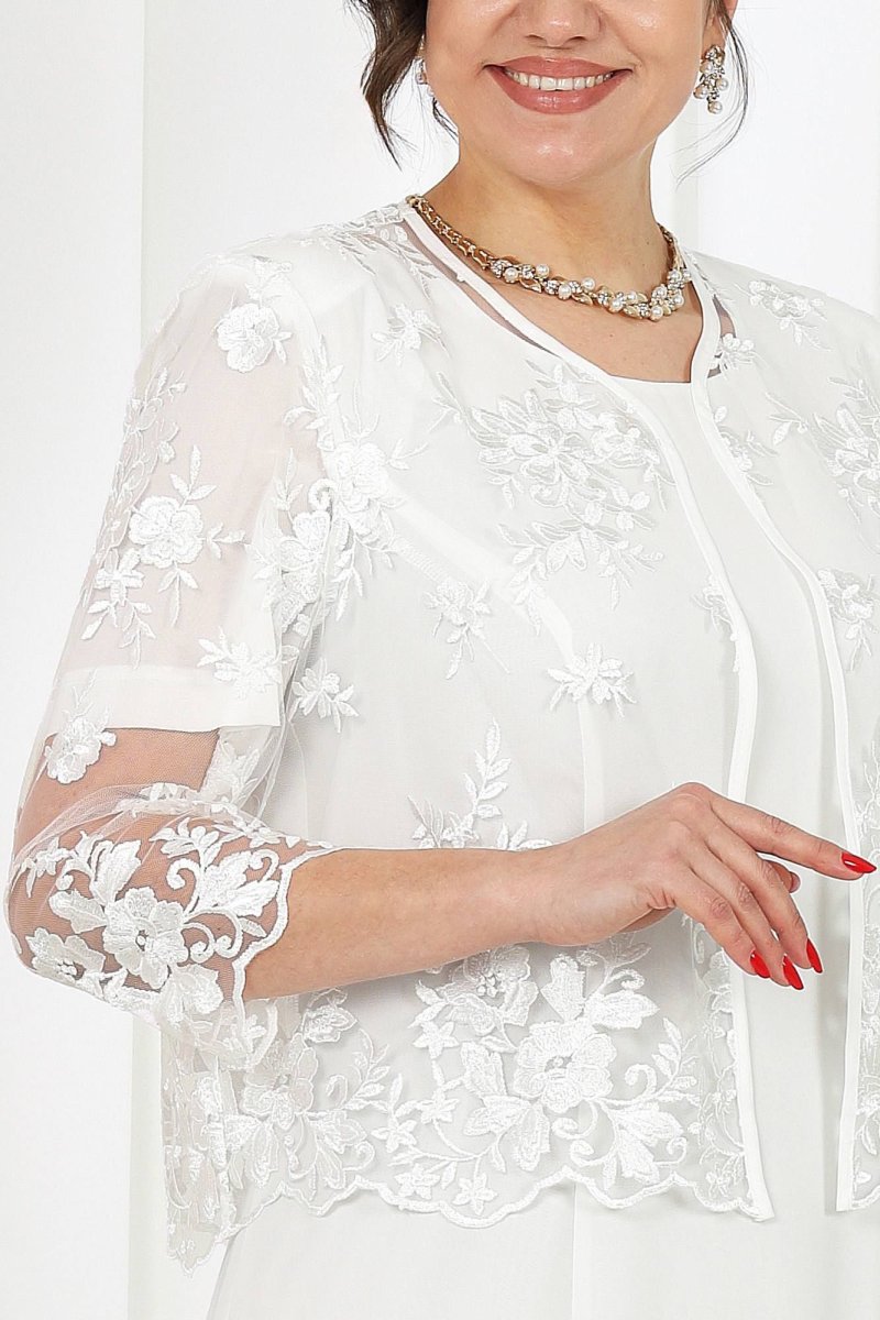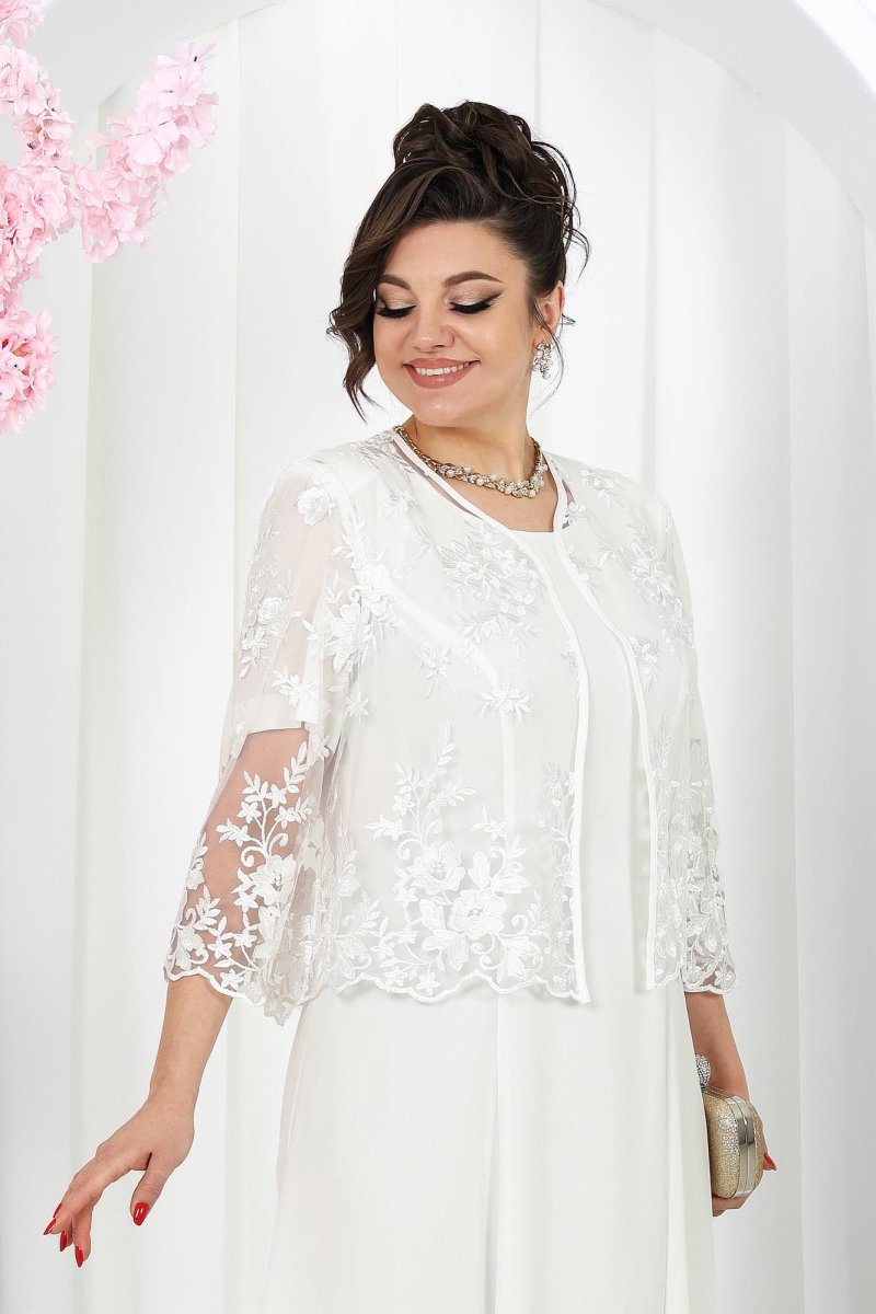 Роскошный образ, созданный для особых случаев! Этот костюм идеально подойдет для торжеств, вечеринок и мероприятий, где хочется блистать. Лёгкое шифоновое струящееся платье в пол подчеркивает женственность и визуально удлиняет силуэт, а нарядный кружевной жакет добавляет изысканности. Дополните костюм элегантными аксессуарами – и ваш стильный выход гарантирован!