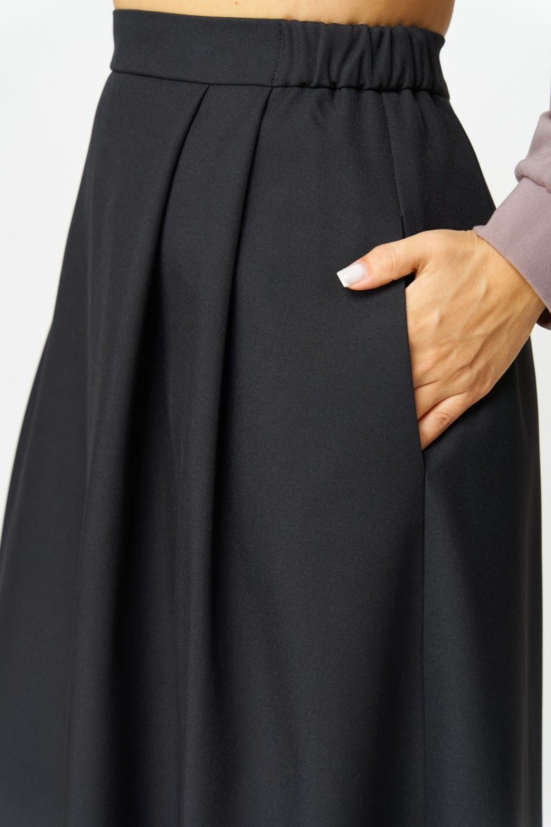 Этот комплект создан для женщины, которая любит элегантность в простых линиях и универсальность в каждой детали. Кардиган свободного кроя с глубоким V-образным вырезом и застежкой на крупные декоративные пуговицы. Контрастная отделка кантом по краям и по швам. Два накладные кармана спереди и контрастная нашивка на кармане для акцента придают образу лёгкости и расслабленности. Длинные рукава с эластичными манжетами обеспечивают удобную посадку Юбка миди мягко струится, создавая лёгкое движение при ходьбе и добавляя силуэту женственности. Складки в области талии формируют гармоничные пропорции, а глубокий чёрный цвет придаёт образу утончённости и делает его универсальным.