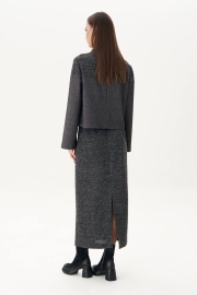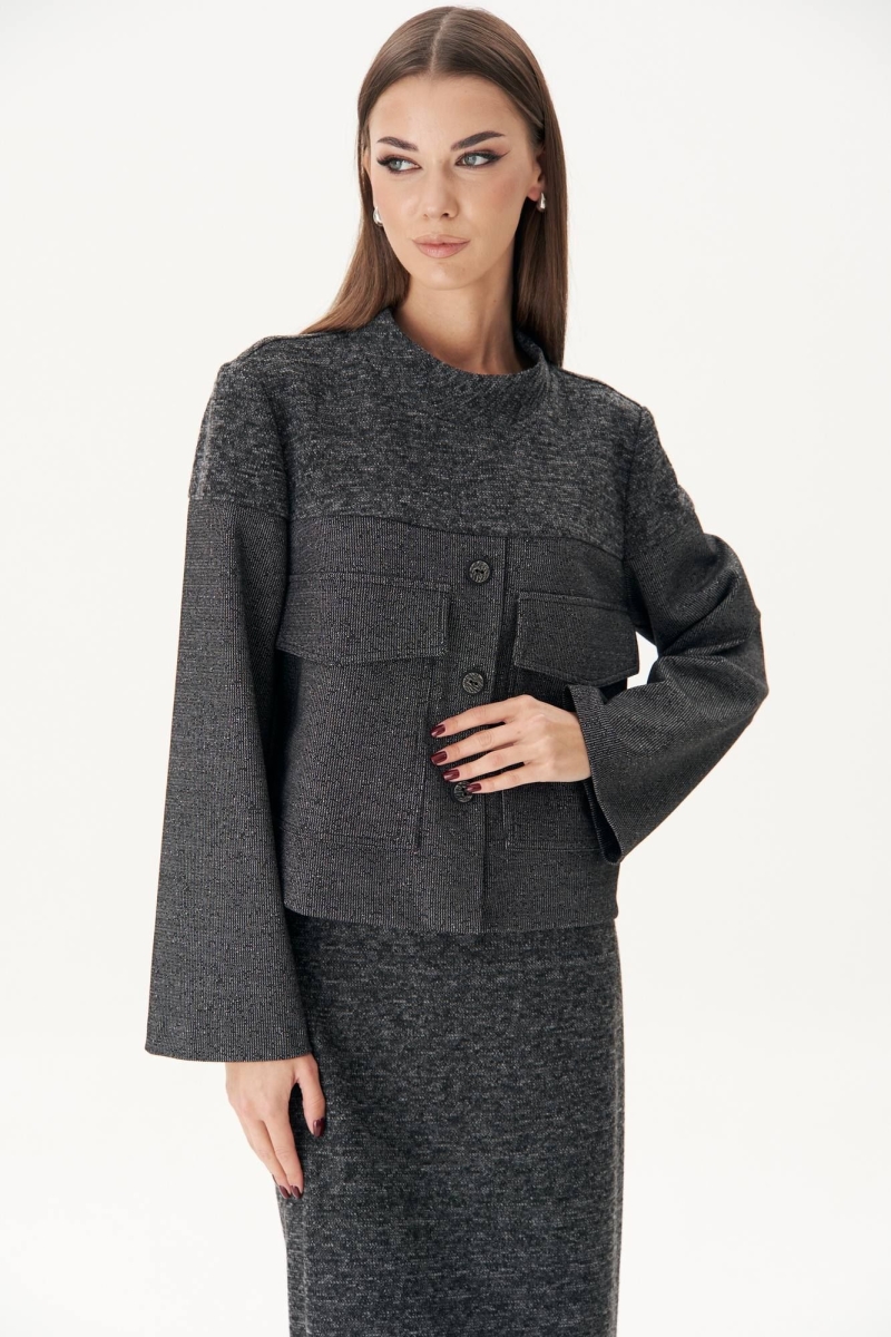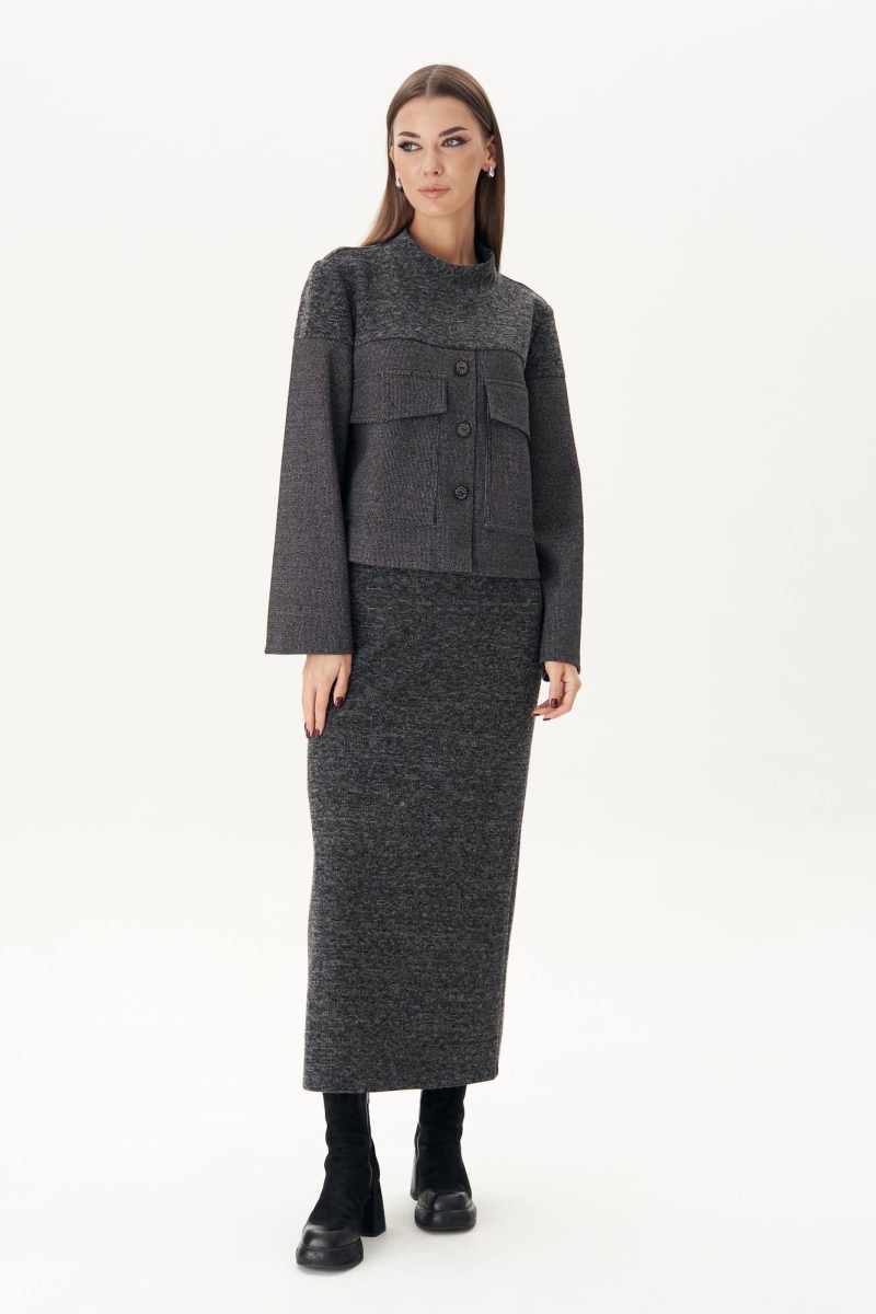 Тренд на готовый костюм с юбкой - идеальное решение для тех, кто не хочет отказываться от мягкости и уюта трикотажного полотна, а также сохраняет своё время. Такой комплект создаёт максимально тёплый, элегантный и одновременно стильный образ. Юбка макси, прямая на притачном эластичном поясе с люверсами и отделочным шнуром в кулисе, наклонными боковыми карманами и разрезом сбоку, из текстильного трикотажного полотна эффекта ""вельвет"". Джемпер свободный, из трикотажной фактурной сетки с напылением и отделкой из текстурного трикотажа. Покрой свободный с заниженной линией плеча. Рукав с отрезной манжетой и цельнокроеным лампасом, переходящим на полочку и спинку. Манжеты, отрезной пояс низа джемпера и обтачка горловины также из отделочного трикотажа. Длина юбки около 90 см. Длина джемпера около 62 см. Длина рукава с плечом около 74 см.