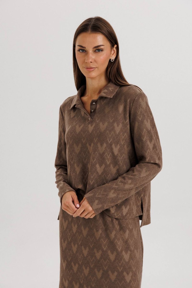 Джемпер-поло выполнен с длинным рукавом и отложным воротником, застёжка на несколько пуговиц добавляет спортивной нотки. Свободный крой создаёт расслабленный силуэт и ощущение уюта.