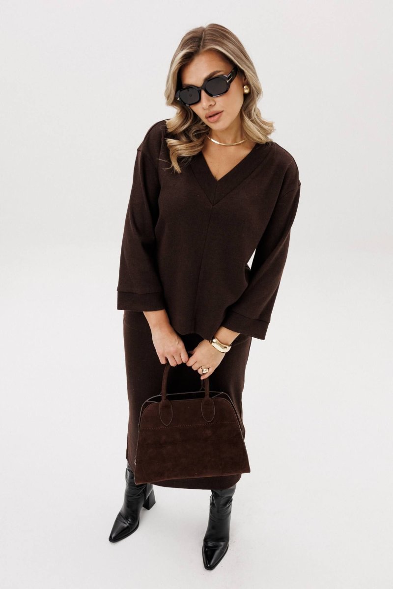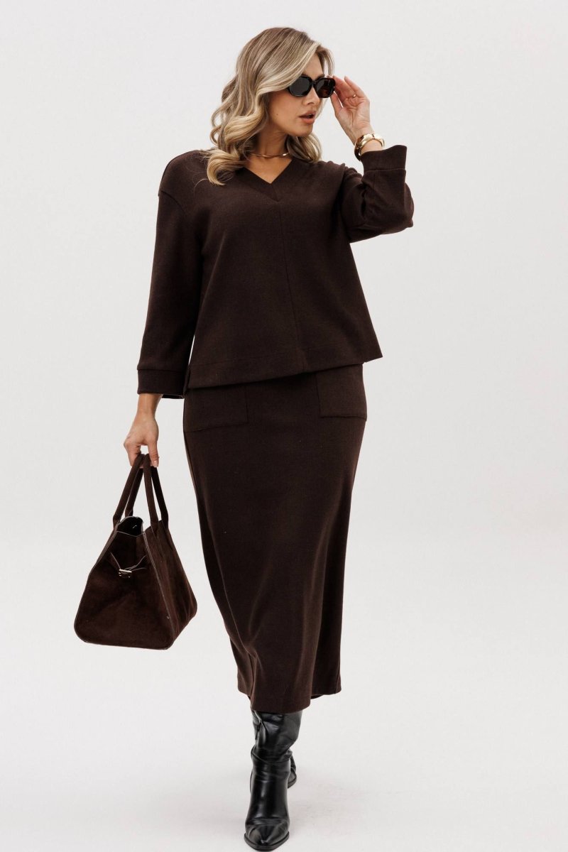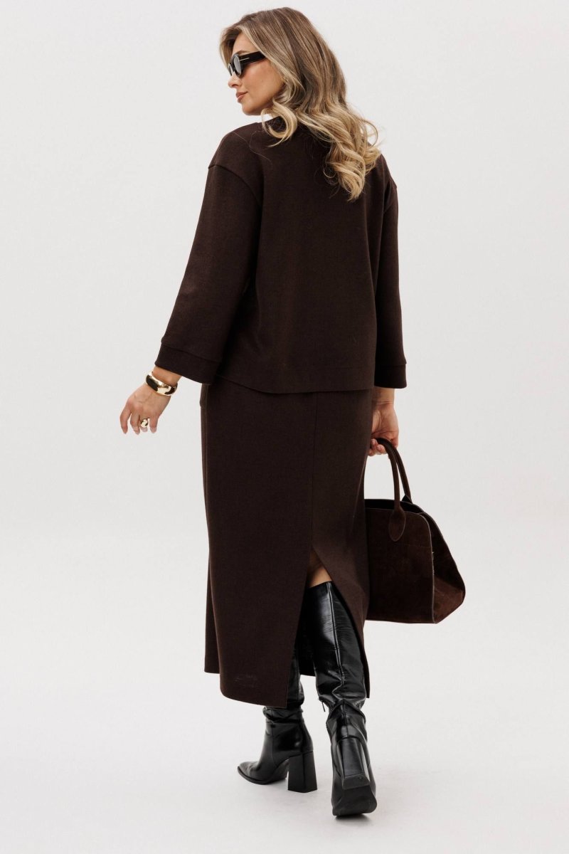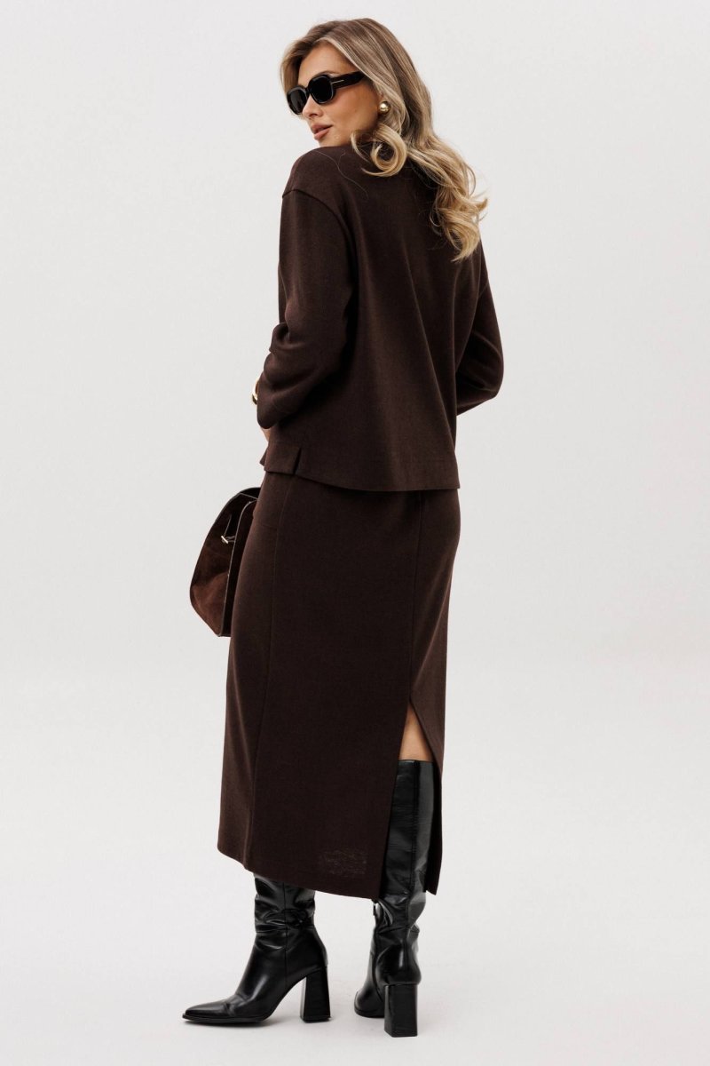 Модный ""must have"" осенне-зимнего сезона - трикотажный костюм с длинной юбкой, и эта длина - максимальна. В тандеме со слегка укороченным верхом простота и элегантность выходят на максимальный уровень.