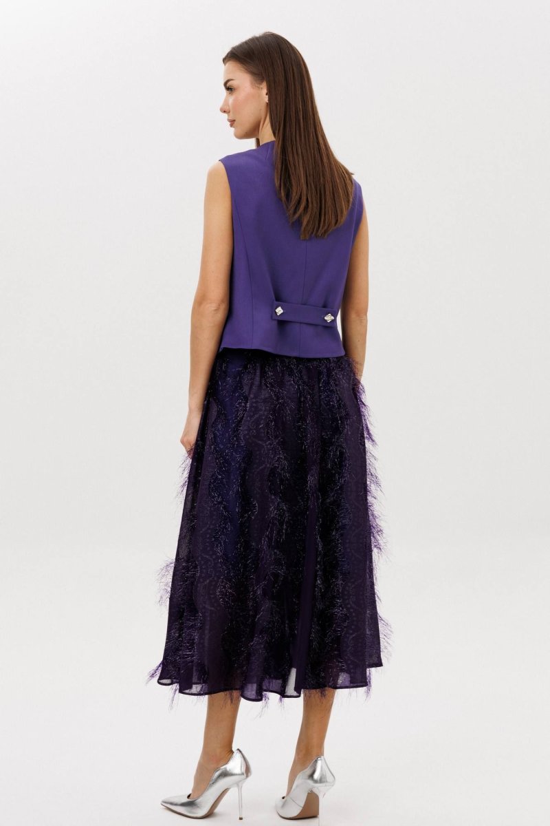 Актуальный комплект, в котором строгая геометрия жилета гармонично сочетается с романтичной женственностью многослойной юбки. Лёгкий шифон с фактурным переливом делает образ выразительным и праздничным, а продуманная посадка юбки обеспечивает красивую линию талии и динамику силуэта.
