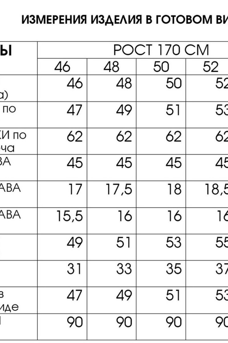 Размеры: 46, 48, 50, 52, 54, 56, 58, 60, 62