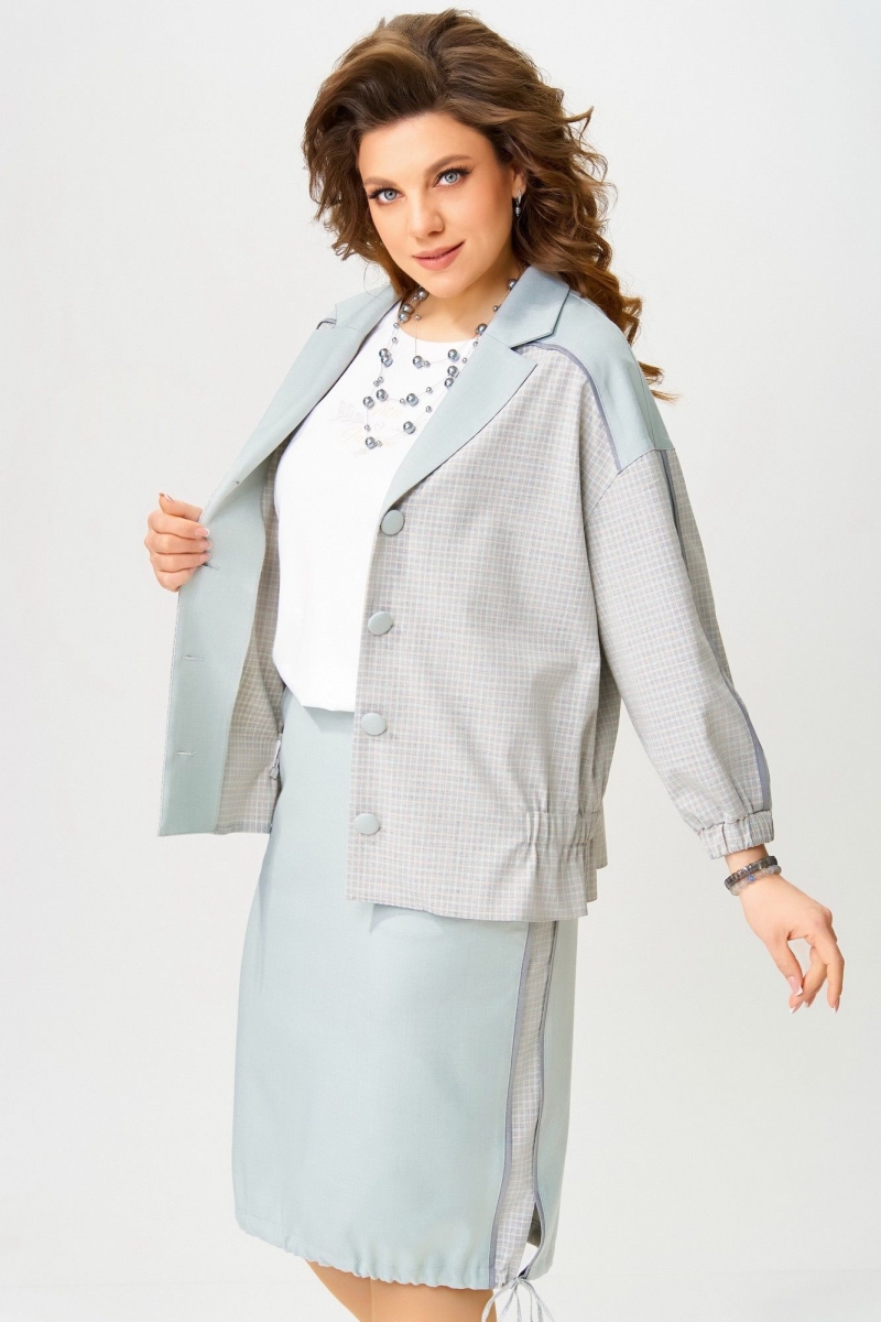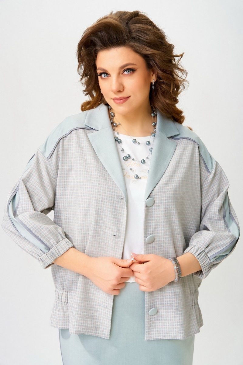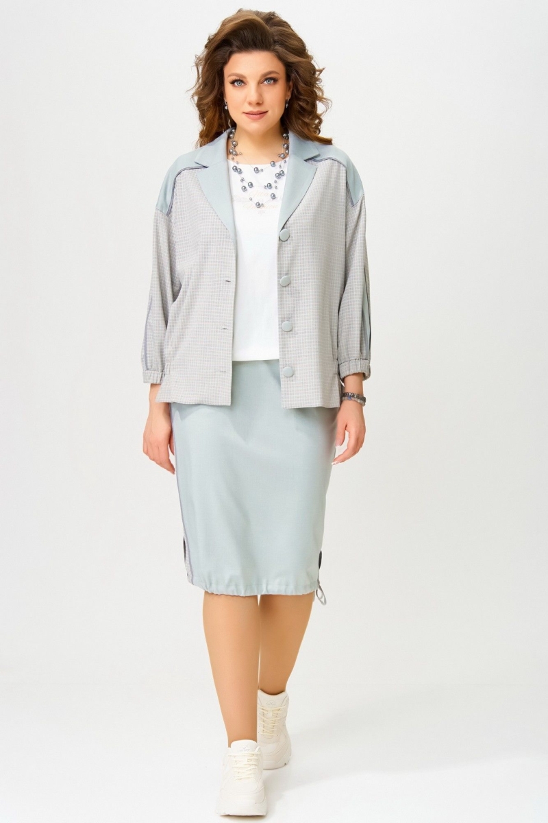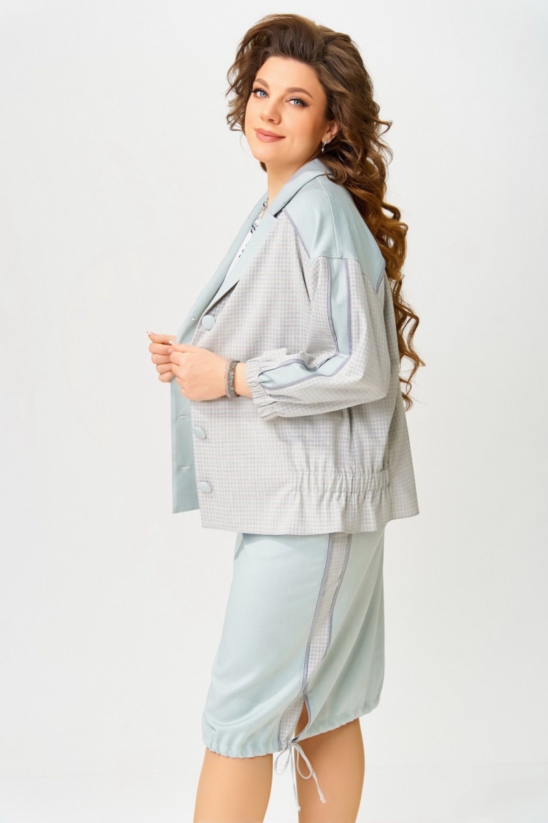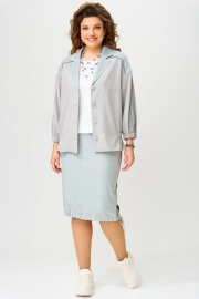 Состав: 70% вискоза, 30% полиэстер; майка-топ: 95%: вискоза, 5% эластан цвет: серо-мятный