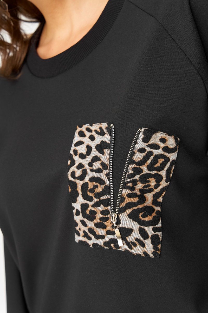 Костюм женский предназначен для повседневной носки. Костюм женский 2-х предметный джемпер и юбка. Джемпер прямого силуэта, длиной до линии бёдер. Перед и спинка цельнокроеные. Перед декорирован на уровне линии груди слева настрочной аппликацией выполненной в виде расстёгнутого кармана с молнией. Горловина круглая с втачной планкой из отделочной ткани. Рукав реглан, втачной, одношовный, длинный, с притачной манжетой из отделочной ткани. Джемпер с притачной планкой из отделочной ткани по низу. Юбка прямая, диной до середины икры. Переднее полотнище без конструктивных особенностей. Заднее полотнище со средним швом, заканчивающимся шлицей. Юбка с притачным поясом, собранным на эластичную тесьму, закреплённую 2-мя отделочными строчками. Юбка на подкладке. Длина юбки по боковому срезу 71 см. Длина спинки джемпера 65 см, длина рукава 74 см.