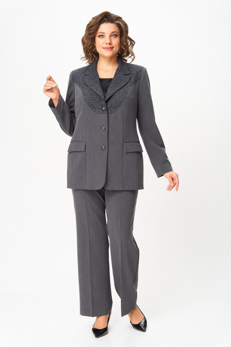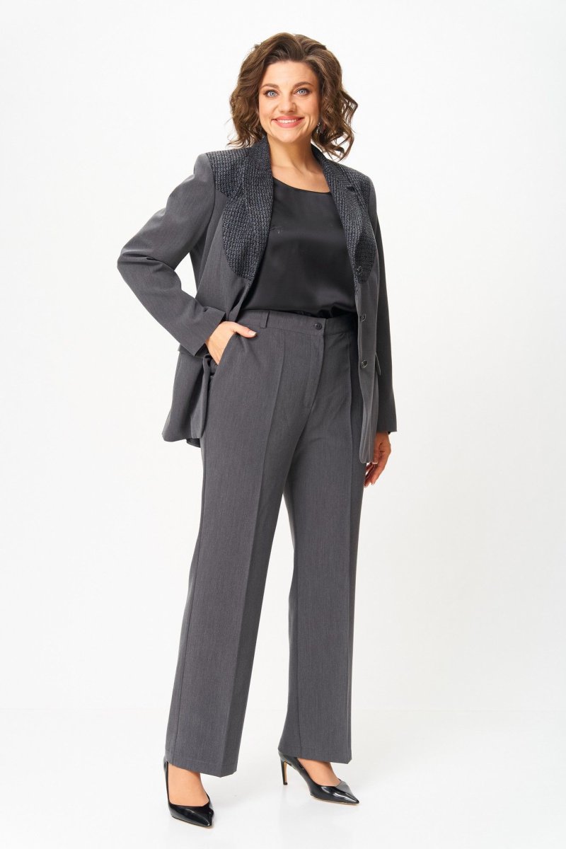 Костюм полуприлегающего силуэта, состоящий из жакета и брюк, выполнен из однотонной костюмной ткани. Ткань верха имеет механическое растяжение благодаря содержанию в ней эластана. Брючный костюм идеальный вариант как на торжественные мероприятия, так и отличный офисный вариант.