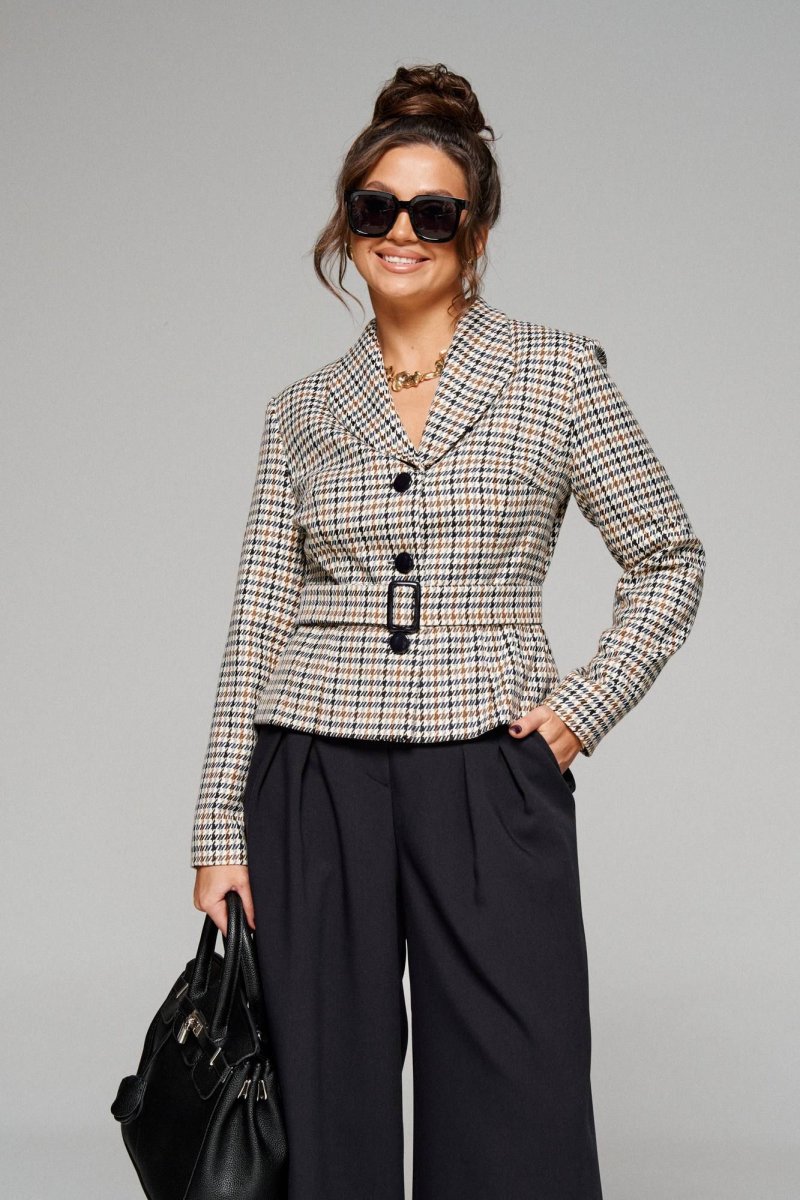 В качестве дополнительного декоративного элемента к жакету прилагается пояс на пряжке.