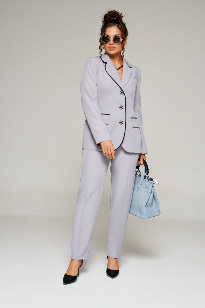 Контраст - современная классика, которая любима в повседневной жизни, а удобство брючного костюма – неоспоримый факт, проверенный жизнью. Костюм женский 2-ух предметный: жакет и брюки в деловом стиле. Выполнен из костюмно-смесового полотна с нежной, гладко-бархатистой фактурой, приятной на ощупь и матовой поверхностью.