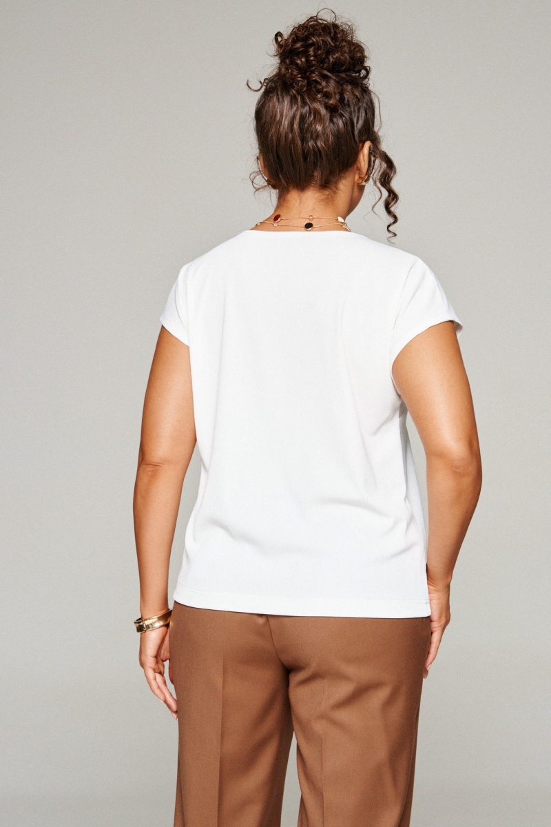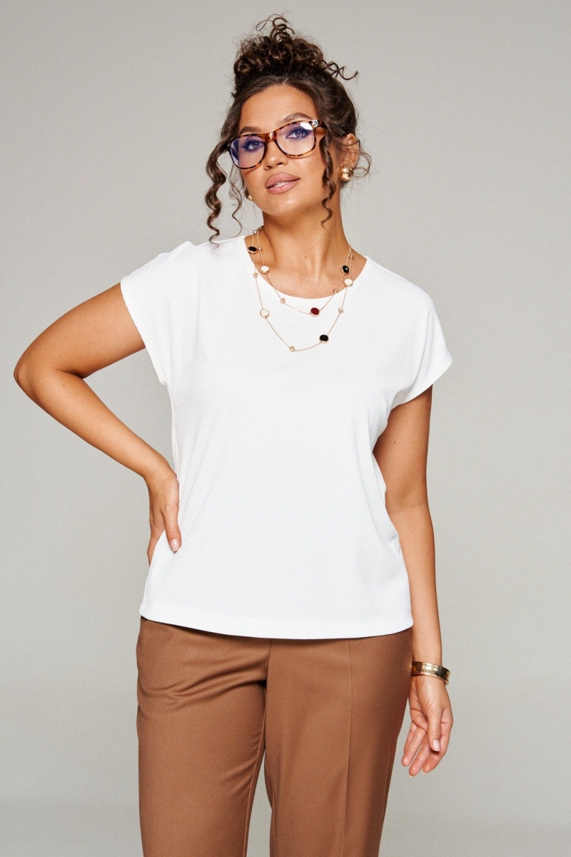 Блузка полуприлегающего силуэта. Горловина округлой формы.