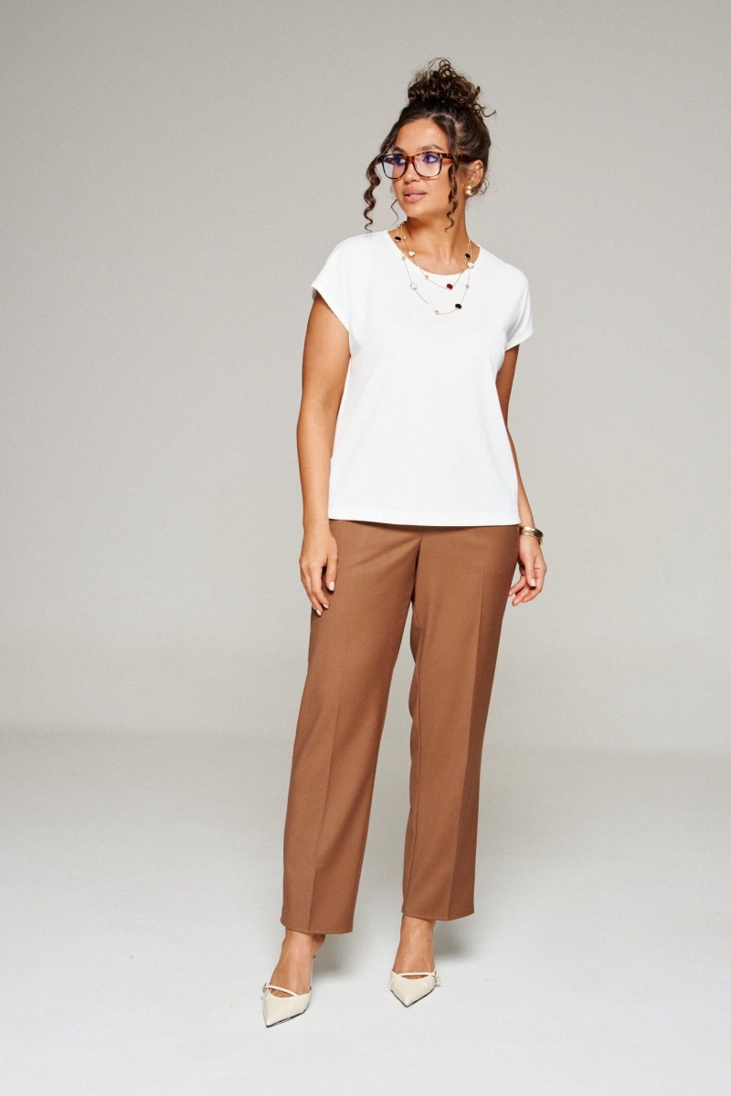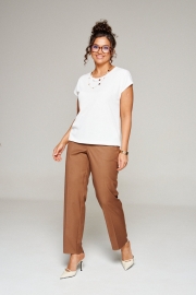 Брюки классические, укороченные; слегка зауженные к низу; с высокой посадкой и боковыми карманами в верхней части переда.