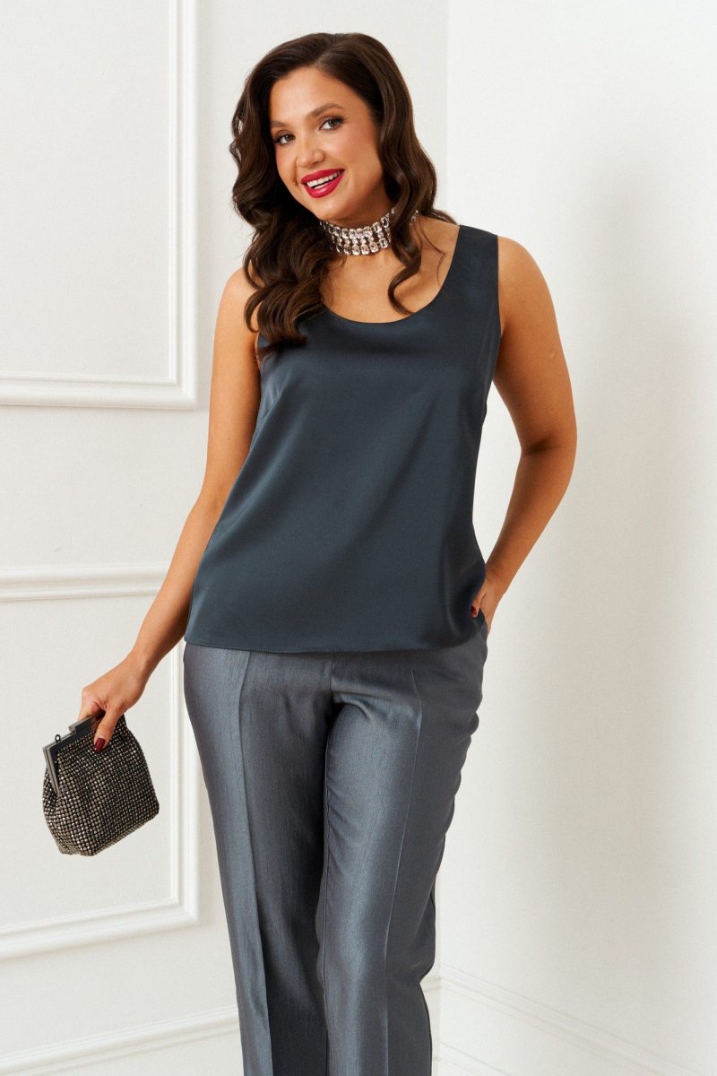 Топ полуприлегающего силуэта. Горловина округлой формы.