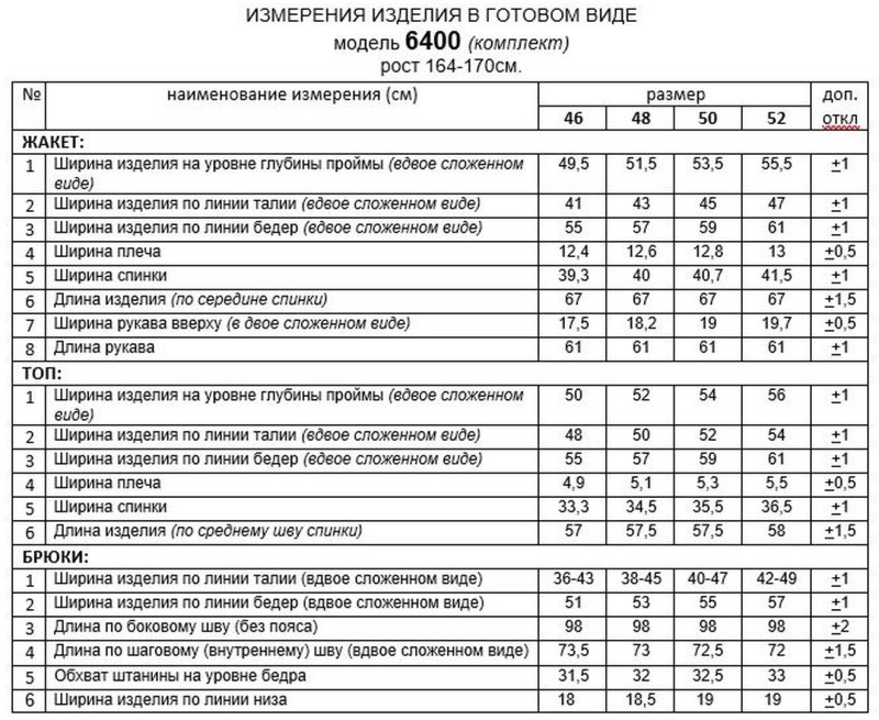 Таблица размеров
