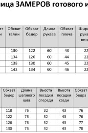 | Размер | Обхват груди (см) Грудь | Обхват талии (см) Талия | Обхват бедер (см) Бедра |