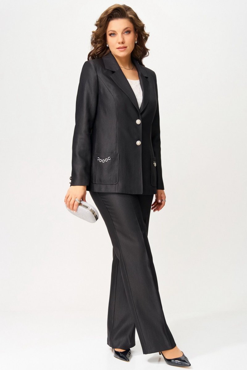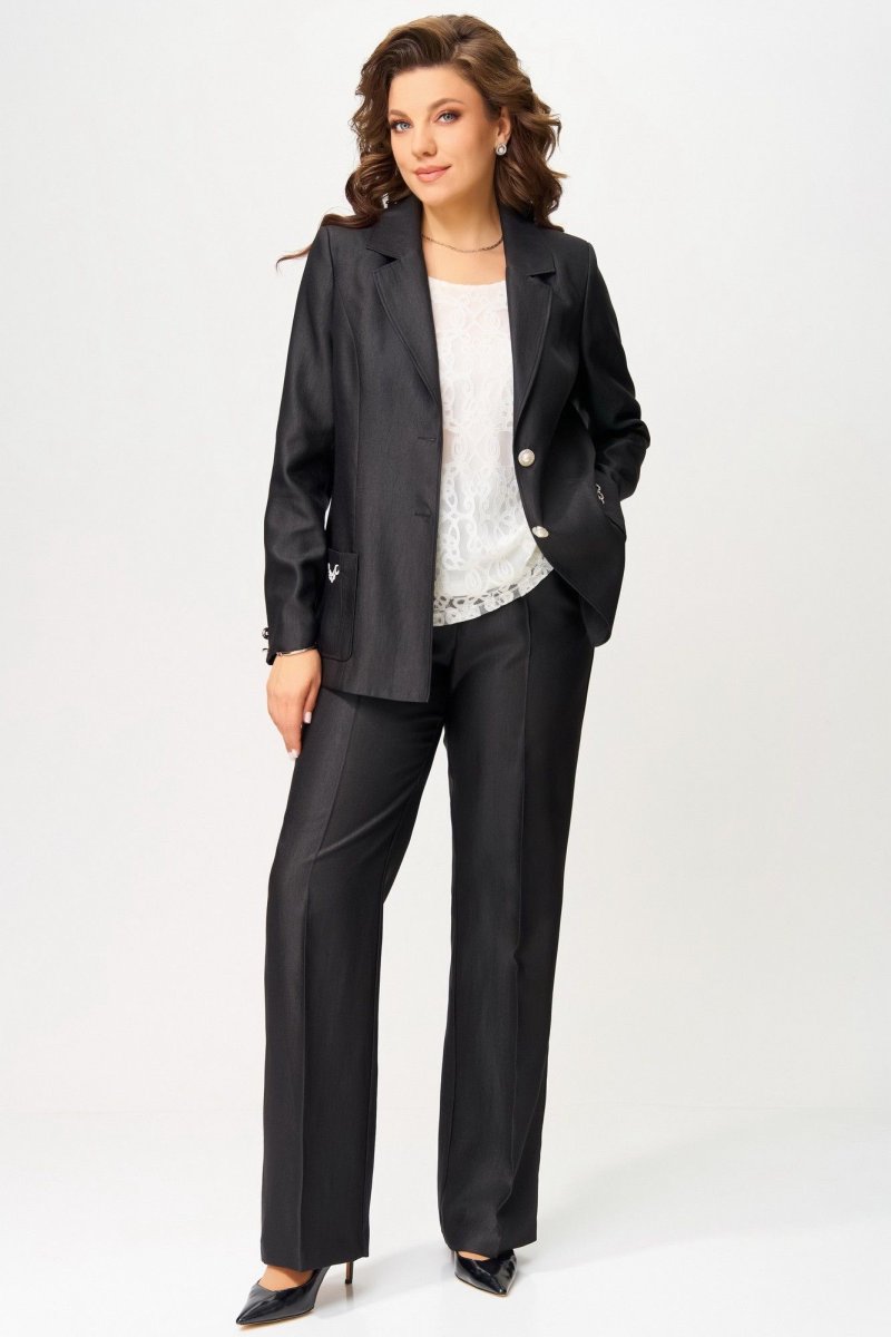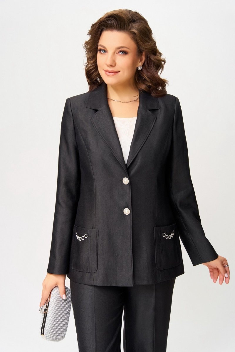 Полуприлегающий силуэт жакета на подкладке словно создан для того, чтобы подчеркнуть достоинство осанки и лёгкость движения. Ткань "Лумина" с вискозой в составе играет на свету мягким благородным блеском, словно отражая внутренний свет своей обладательницы. Однобортная застёжка на петли и пуговицы — классика, которая не нуждается в объяснениях. Воротник и лацканы пиджачного типа придают образу деликатную строгость, а рельефы на полочке и накладные карманы с декоративной цепочкой — изысканную игру фактур. Карман-обманка на левой полочке — как лёгкий намёк на тайну, а две декоративные пуговицы на рукавах — как изящные акценты, завершённые с ювелирной точностью. Средний шов по спинке — линия, соединяющая форму и содержание.