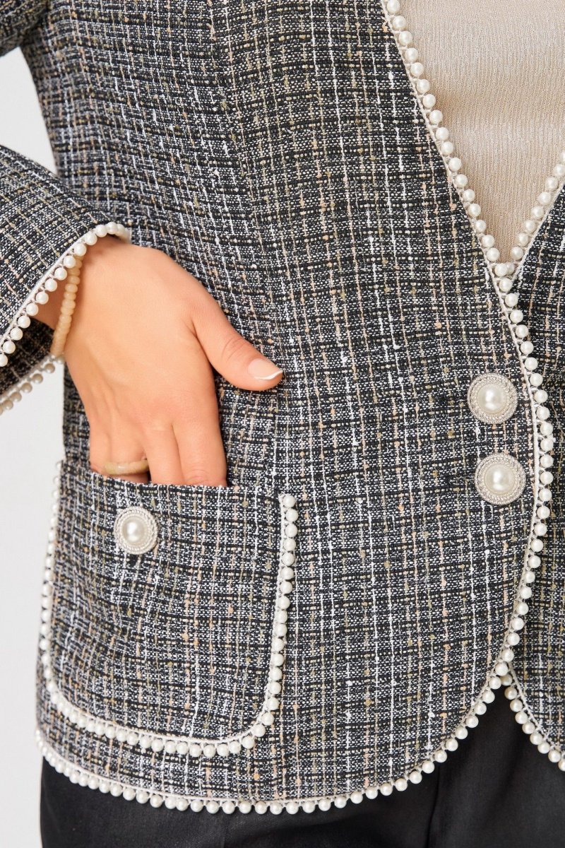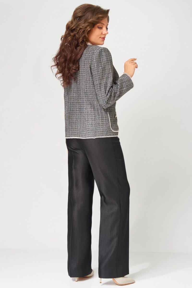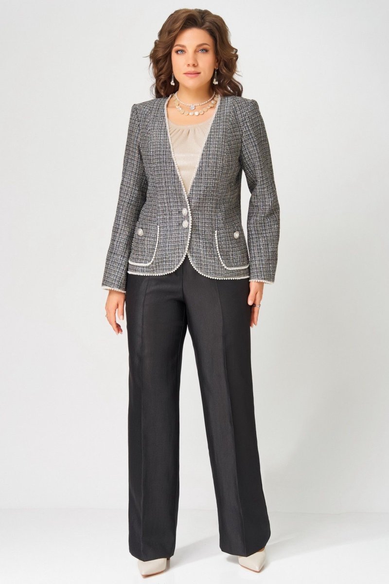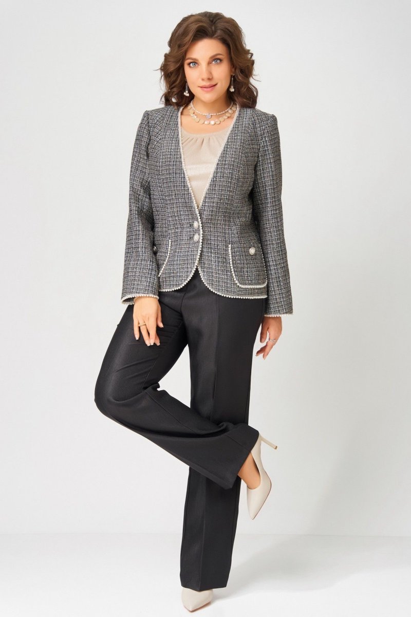 "Ясиня" — нарядная тройка, которая легко впишется в повседневность. Жакет, брюки и джемпер создают элегантный образ, подходящий как для торжеств, так и для рабочих будней. Стиль, комфорт и женственность — в каждой детали.